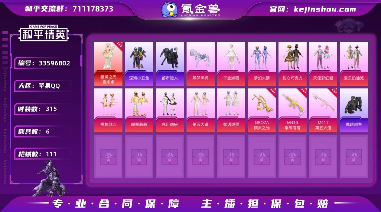 【稀有枪皮】蜜獾-异瞳寒姬,GROZA-精灵之光,M416暖熊萌萌,14-福马献瑞,M417第五大道,AKS-74U-森灵之息,M249-霁蓝缠春,M249-绝对恒星,DP-28-千金淑猫,DP-28-鸢尾珑雾,PKM-萌骑夺宝