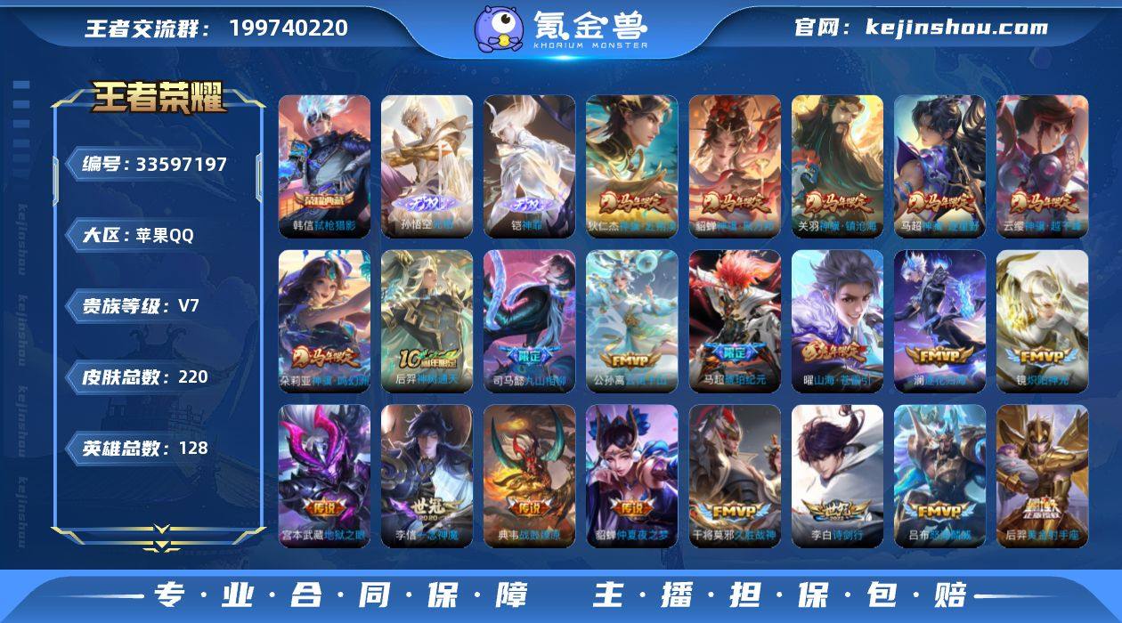 【mwz440】苹果Q-V7-永恒钻石IV段位-128英雄-220皮肤-1典藏皮肤-2无双-26传说-56史诗 【英雄全皮】:司马懿全皮,敖隐全皮,海诺全皮 【荣耀典藏】:韩信弑枪猎影 【无双皮肤】:孙悟空无相,铠神罪 【传说皮肤】:云缨神骥越千峰,关羽神骥镇沧海,朵莉亚神骥鸣幻洲,狄仁杰神骥赴朔漠,貂蝉神骥聚万邦,马超神骥逐星野,后羿神树通天,司马懿九山相柳,公孙离云诺千山,典韦战鼓燎原,马超琥珀纪元,澜逐花归海,马可波罗妄想实况,项羽无限倾心,曜山海苍雷引,吕布怒海麟威,李白诗剑行,赵云淬星耀世,镜炽阳神光,虞姬启明星使,李信一念神魔,干将莫邪久胜战神,梦奇胖达荣荣,后羿黄金射手座,貂蝉仲夏夜之梦,宫本武藏地狱之眼 【限定皮肤】:蔡文姬夏日便利店,虞姬夏日便利店,姜子牙天穹之誓,狄仁杰阴阳师,赵云皇家上将,阿轲迷踪丽影,钟无艳超时空战士,元歌云间偶戏,元歌无心,夏侯惇朔风刀,甄姬落雪兰心,典韦穷奇,马可波罗妄想实况,狄仁杰魔术师,狄仁杰万华元夜,达摩沙漠行僧,项羽海滩派对,项羽无限倾心,老夫子醍醐杖,程咬金演武夺筹,刘邦夺宝奇兵,韩信飞衡,亚瑟潮玩骑士王,孙悟空至尊宝,牛魔御旌,李元芳银河之约,李元芳云中旅人,虞姬启...