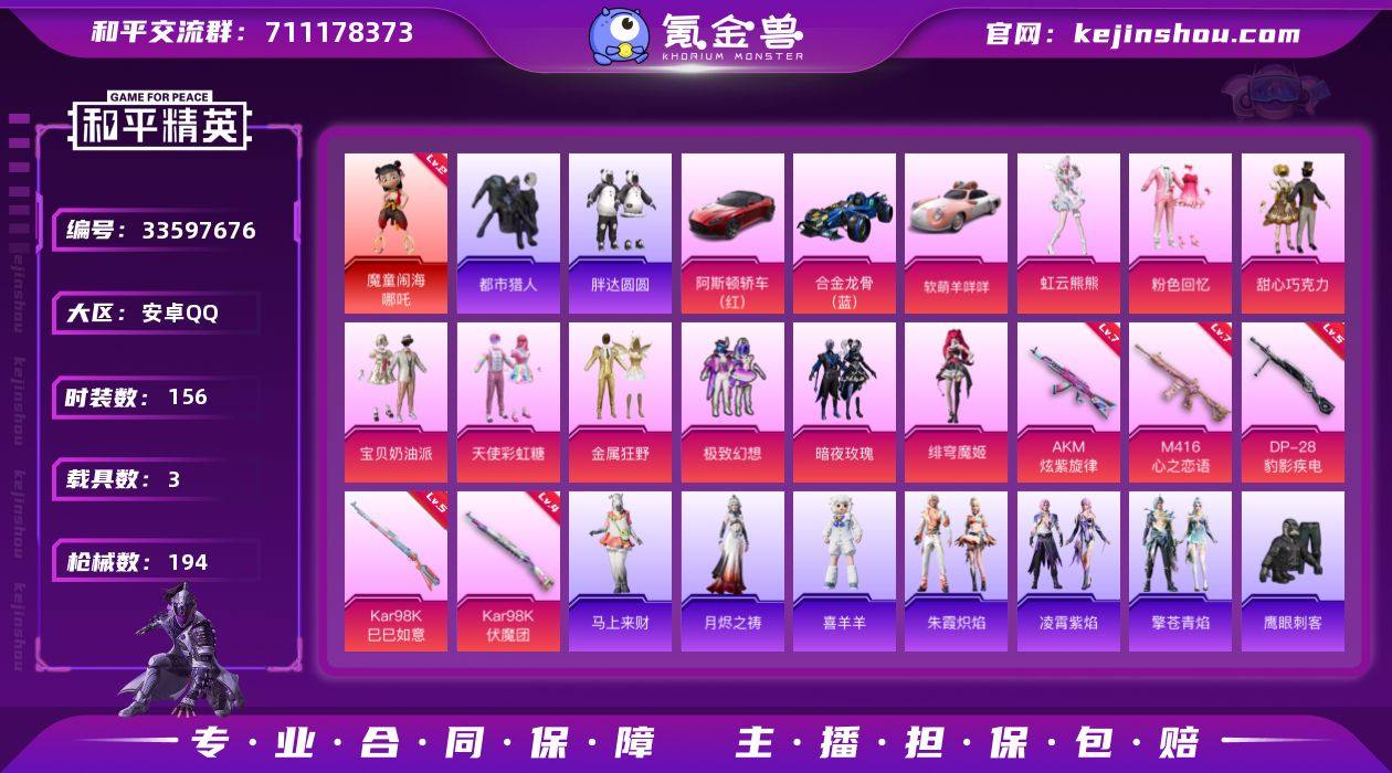 【AZH3024】安卓 手Q【二级哪吒 巡查衣都市巧克力三姐妹 红熊茄茄糯粉咩咩胖达圆圆 满级炫紫旋律AKM 满级心之恋语M416 3载具1僚机】1神装-9粉装-5特效枪-3载具-3粉色飞行器-75687热力值-12王牌印记-156套装-194枪皮 【红色神装等级】:魔童闹海-哪吒(二级) 【红色角色神装】:魔童闹海-哪吒 【热门品类】:绝对防御上衣,套装-都市猎人,套装-胖达圆圆,套装-龟仙人,套装-暗影哥特,套装-糯粉咩咩,套装-红熊茄茄 【粉色套装】:粉装-粉色回忆,粉装-甜心巧克力,粉装-宝贝奶油派,粉装-天使彩虹糖,粉装-金属狂野,粉装-极致幻想,粉装-暗夜玫瑰,角色-绯穹魔姬,角色-虹云熊熊 【粉色枪皮等级】:AKM-炫紫旋律(七级),M416-心之恋语(七级),Kar98K-伏魔团(四级),Kar98K-巳巳如意(五级),DP-28-豹影疾电(五级) 【粉色载具】:阿斯顿马丁DBS(红),合金龙骨(蓝),软萌羊咩咩,僚机-冰龙团团 【粉色枪皮】:AKM-炫紫旋律,M416-心之恋语,Kar98K-伏魔团,Kar98K-巳巳如意,DP-28-豹影疾电 【粉色飞行器】:无垠阁飞行器,飞天猪飞行器 【粉色降落伞】:甜心宝贝降落伞,精灵迷巫降落伞,甜蜜誓约降落伞,马卡龙降落伞,潮汐统领降落伞,炙焰牛王降落伞,无垠阁降落伞,魔...
