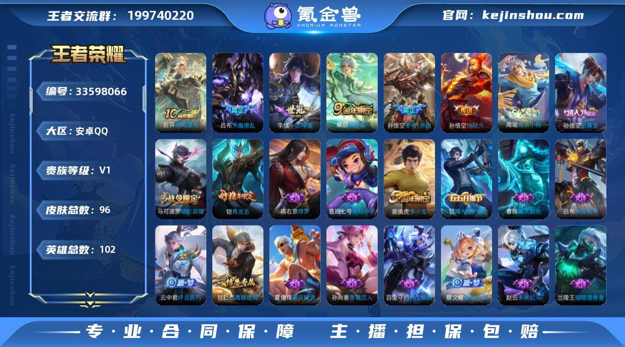 【精氪男号·至尊宝·一念神魔·零号赤焰·天魔缭乱·青龙志+满级铭文】 安卓Q-V0-尊贵铂金IV段位-102英雄-96皮肤-6传说-25史诗 【传说皮肤】:后羿神树通天,桑启鸣野蒿,孙悟空零号赤焰,李信一念神魔,孙悟空地狱火,吕布天魔缭乱 【限定皮肤】:姜子牙天穹之誓,狄仁杰阴阳师,赵云皇家上将,孙尚香蔷薇恋人,鲁班七号乒乒小将,阿轲迷踪丽影,吕布天魔缭乱,马可波罗暗影游猎,狄仁杰魔术师,狄仁杰万华元夜,项羽海滩派对,老夫子醍醐杖,程咬金演武夺筹,刘邦夺宝奇兵,孙悟空至尊宝,孙悟空零号赤焰,钟馗驱傩正仪,雅典娜单词大作战,蔡文姬繁星吟游,鬼谷子原初探秘者,铠青龙志,弈星混沌棋,明世隐疑决卦,裴擒虎李小龙,云中君纤云弄巧,猪八戒西部大镖客,蒙犽狂想玩偶喵,刘邦剑破天穹,周瑜熔金海岸 【年限皮肤】:铠青龙志 【赛季限定】:弈星混沌棋,明世隐疑决卦,老夫子醍醐杖,鬼谷子原初探秘者,狄仁杰万华元夜,程咬金演武夺筹,钟馗驱傩正仪,刘邦剑破天穹,姜子牙天穹之誓 【战令限定】:阿轲迷踪丽影,刘邦夺宝奇兵,马可波罗暗影游猎,猪八戒西部大镖客,蒙犽狂想玩偶喵,雅典娜单词大作战,周瑜线条小狗 【史诗皮肤】:周瑜线条小狗,鲁班七号乒乒小将...
