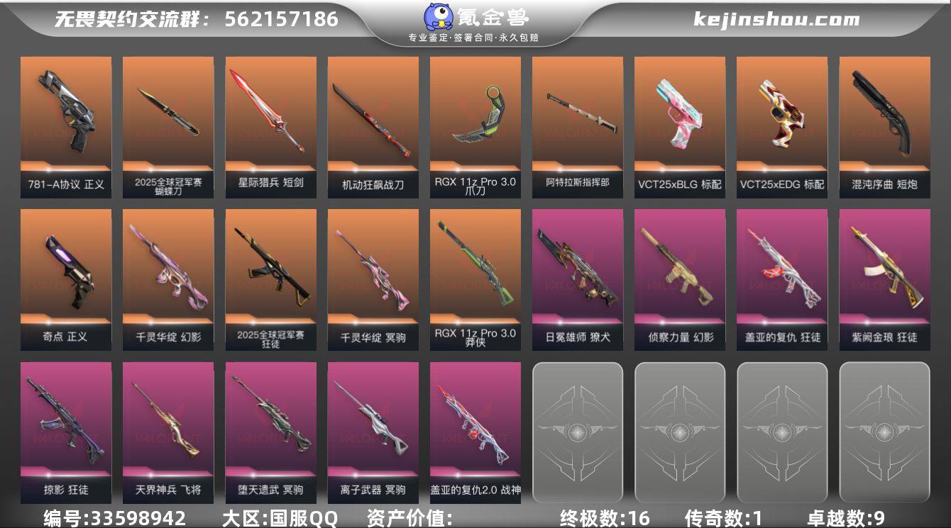 【PTWW4004】LV等级76/皮肤总价值43300/段位黄金/总皮肤数量87/刀皮数量8/枪皮数量79/套装数量1/具体详情请看图/2025全球冠军赛/炼狱/暮蝶/壹决/铁臂/捷风/不死鸟/贤者/猎枭/芮娜/尚勃勒/霓虹/海神/钢锁/2025全球冠军赛 蝴蝶刀/近战武器-蒙太奇 战斧/近战武器-碎心裂刃/爪刀-RGX 11z Pro 3.0/黑波之刃/机动狂飙战刀/阿特拉斯指挥部/星际猎兵 短剑/2025全球冠军赛 狂徒/狂徒-掠影/狂徒-盖亚的复仇/狂徒-紫阙金琅/幻影-千灵华绽/幻影-侦察力量/幻影-蒙太奇/幻影-橙色疾影/獠犬-日冕雄师/冥驹-千灵华绽/冥驹-堕天遗武/冥驹-离子武器/冥驹-极简主义/飞将-天界神兵/莽侠-RGX 11z Pro 3.0/战神-盖亚的复仇2.0/战神-蒙太奇/奥丁-巨神铁甲/骇灵-无限竞技/骇灵-蒙太奇/标配-神罚/标配-VCT25xBLG/标配-VCT25xEDG/正义-奇点/正义-781-A协议/狂怒-蒙太奇/短炮-混沌序曲/Clutch 卡面/战术熊与伙伴们 卡面/无畏契约GO!第一卷:芮娜 卡面/清除名单 卡面/无畏契约GO!第一卷:零 卡面/钢锁vs盖可 卡面/代号红色 卡面/新兵报到 卡面/V契约 卡面/无畏契约 卡面/买装还是存钱 喷漆/红鳞 喷漆/无畏契约GO!第一卷:贤者 喷漆/胜利属于无畏契约 喷漆/GLHF 喷漆/无畏契约 喷漆/工具腰带 挂饰/无畏契...