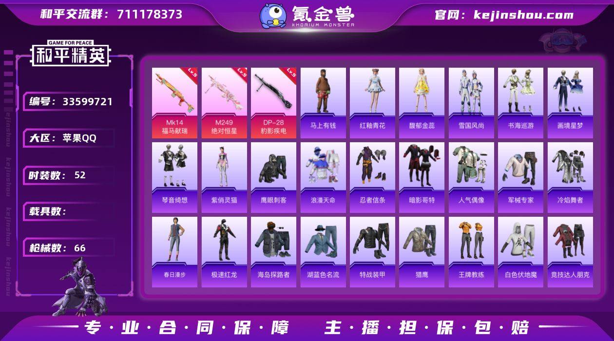 【FK6597】52套装/枪械3/装备90/战备48/王牌印记2/热力值16478/五级MK14-福马献瑞/五级M249-绝对恒星/五级DP-28-豹影疾电/浪漫天命/忍者信条/暗影哥特/MK14-福马献瑞/M249-绝对恒星/DP-28-豹影疾电/炫彩糖果飞行器/幻影战神降落伞/炫彩糖果降落伞/罪夜之冕降落伞/雪国风尚/炫彩糖果/马上有钱/紫俏灵猫/书海巡游/画境星梦/琴音绮想/馥郁金蕊/雨过天青/红釉青花/AUG-冰晶雪宝/AKM-龙的传人/SCAR-L-夜灯/M416-蓝色火焰/GROZA-影袭/ACE32-画境星梦/UZI-影袭/UMP45-夜灯/汤姆逊-天降萌叽/汤姆逊-像素花束/MP5K-画境星梦/Kar98K-影袭/M24-影袭/M1加兰德-画境星梦/S12K-幻世战舞者/AA12-G-画境星梦/M249-彩虹符号/DP-28-彩虹符号/突击盾牌-绝对恒星/平底锅-画境星梦/人气偶像/军械专家/冷焰舞者/春日漫步/极速红龙/海岛探路者/湖蓝色名流/特战装甲/猎鹰/王牌教练/白色伏地魔/竞技达人朋克/绮丽涂鸦/耀粉歌者/蓝彩潮人/街头潮人/青涩时光/魅力单车/黑色伏地魔/鹰眼刺客/漫步者/贵族骑装/幻影战神头盔(2级)/幻影战神头盔(1级)/金羽特工头盔(3级)/金羽特工头盔(2级)/银河战甲背包(3级)/深海小丑鱼背包(1级)/金羽特工背包(1级)