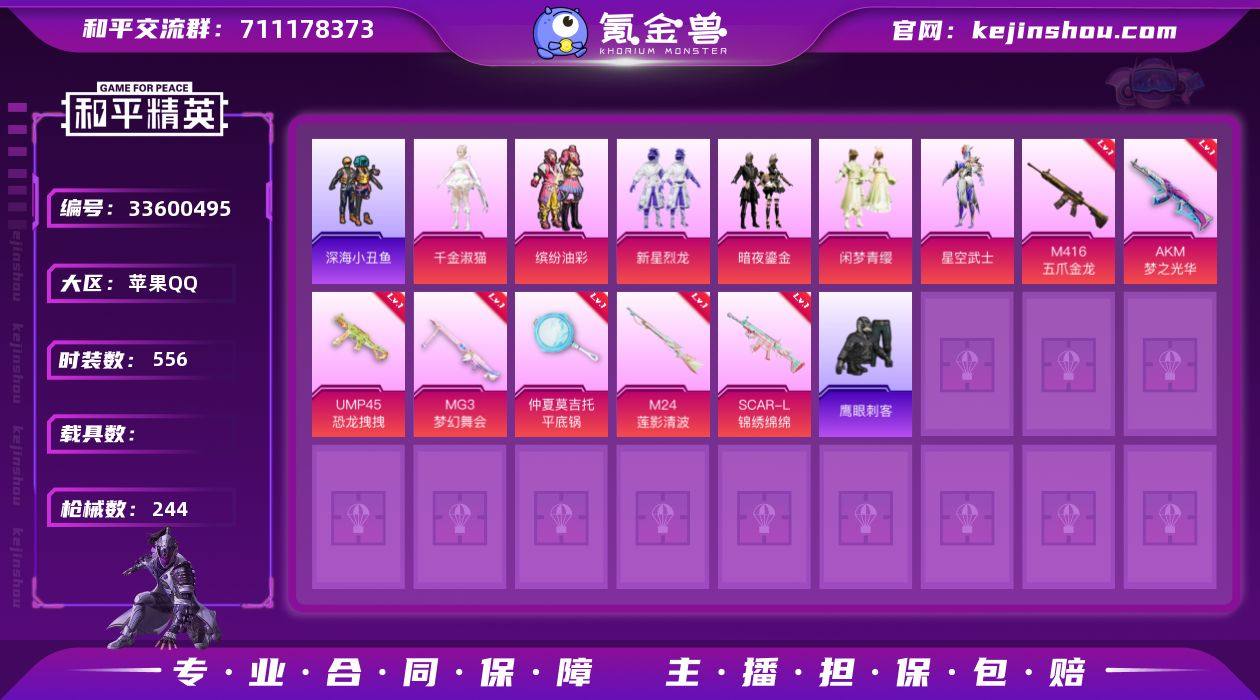 【稀有枪皮】AUG-暖羊咩咩,AMR-智耀战神,AKS-74U-星穹咏叹调,GROZA-镜光银凌,Kar98K-巳巳如意,ACE32-萌骑漫游,14-福马献瑞,DP-28-豹影疾电,M416五爪金龙,AKM梦之光华,UMP45恐龙拽拽,MG3梦幻舞会,平底锅仲夏莫吉托,M24莲影清波,SCAR-L-锦绣绵绵