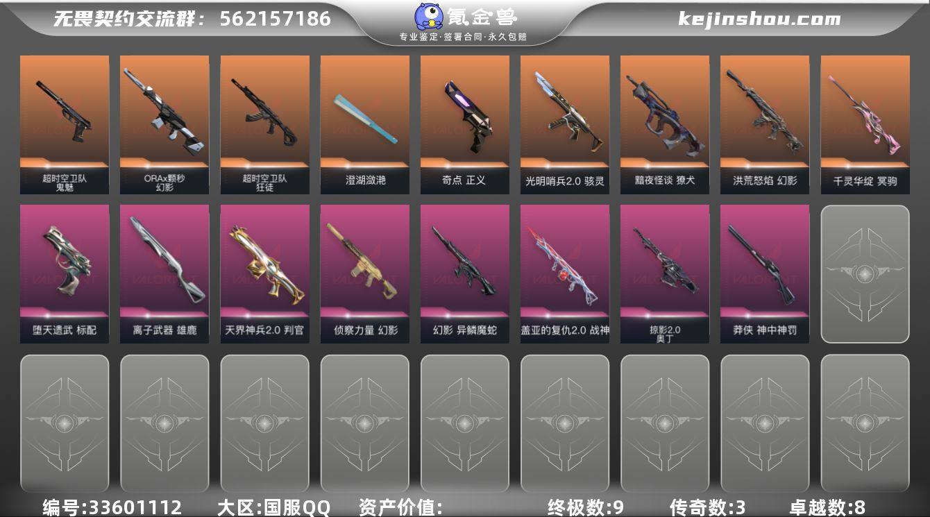 【956334】玩够可回血侦察幻影超时空鬼魅超时空狂徒穿花蝴蝶奇点正义 qyz9891 【近战武器】:近战武器-碎心裂刃,近战武器-穿花蝴蝶,近战武器-澄湖潋滟 【狂徒】:狂徒-超时空卫队 【幻影】:幻影-洪荒怒焰,幻影-ORA x 颗秒,幻影-侦察力量,幻影-异鳞魔蛇 【獠犬】:獠犬-黯夜怪谈 【冥驹】:冥驹-千灵华绽 【莽侠】:莽侠-神中神罚 【战神】:战神-盖亚的复仇//2.0 【奥丁】:奥丁-掠影//2.0,奥丁-神罚 【判官】:判官-天界神兵//2.0 【雄鹿】:雄鹿-离子武器 【骇灵】:骇灵-光明哨兵//2.0 【标配】:标配-堕天遗武 【正义】:正义-奇点 【鬼魅】:鬼魅-超时空卫队 【卡面】:无畏契约GO!第一卷:零 卡面,代号红色 卡面,新兵报到 卡面,V契约 卡面,无畏契约 卡面 【喷漆】:买装还是存钱 喷漆,红鳞 喷漆,松叶 喷漆,放下武器 喷漆,胜利属于无畏契约 喷漆,GLHF 喷漆,无畏契约 喷漆 【挂饰】:天外飞客 挂饰,无畏契约 纪念币 挂饰