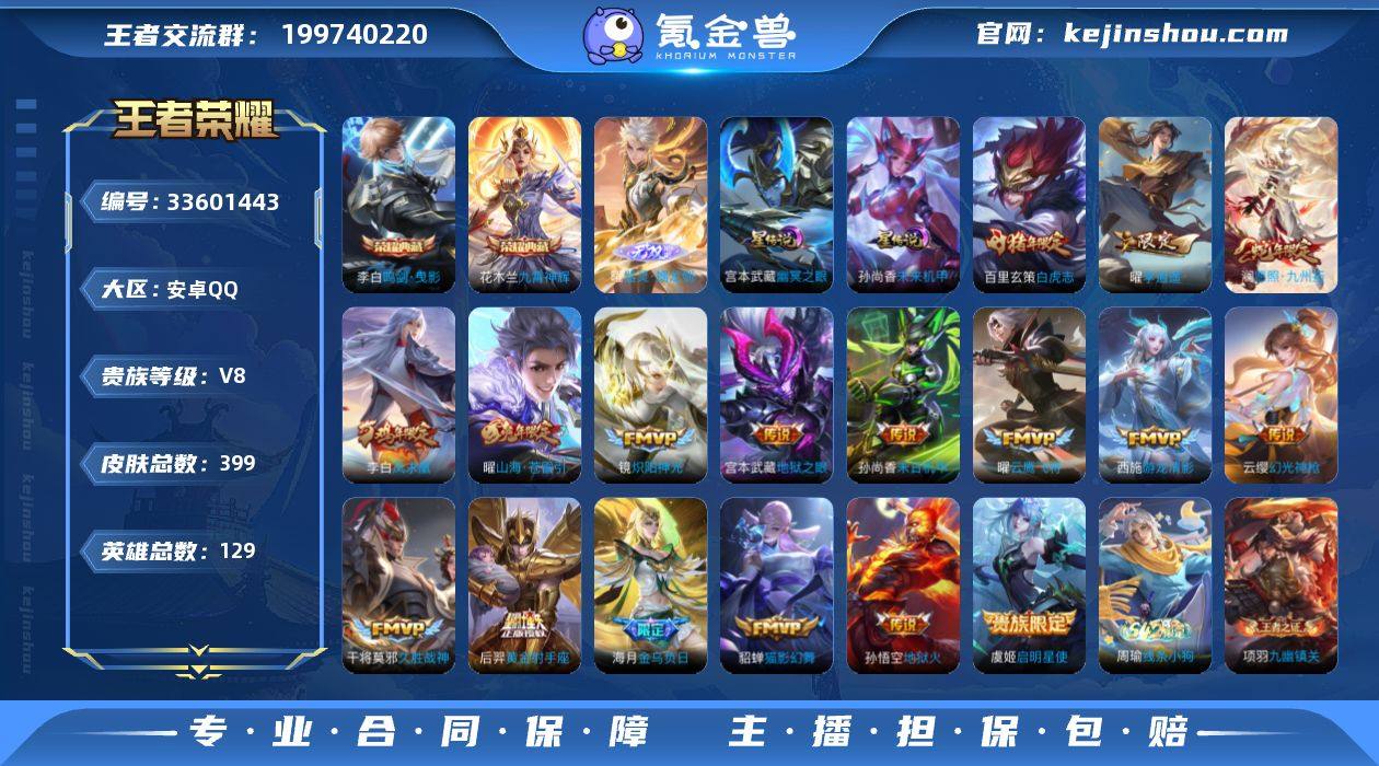 399皮肤 128英雄 17传说 2典藏 1无双 v8极品账号 海月东方曜全皮肤 李白和花木兰的典藏 东方曜的无双限定 有玄策的白虎志猴子的至尊宝 还有孙尚香末日机甲和宫本武藏地狱之眼的星元 感兴趣的可以来咨询 我发对应的详图