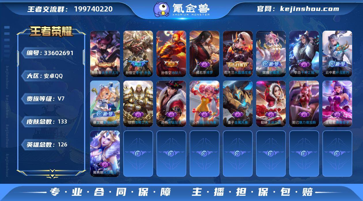 V7 1典藏 2传说 126英雄 133皮肤 可修改实名 男号