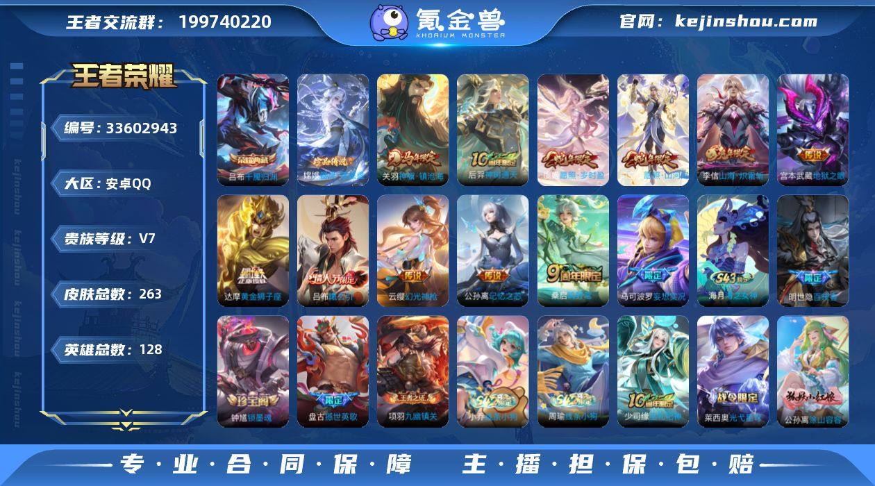 0BCQGY对抗路58段,万战金标司空震,金标亚瑟,金标项羽,金标吕布 可二次262皮肤水晶1珍品传说1传说12优质限定16 信用分正常 钱包已注销 水晶皮肤:千魇归渊, 珍品传说皮肤:器灵·落星盏, 新传说限定:神骥·镇沧海, 传说限定:吕布曦玄引,山海·炽霜斩,愿照·山河定,妄想实况,愿照·岁时盈,神树通天, 传说皮肤:幻光神枪,黄金狮子座,地狱之眼,记忆之芯,鸣野蒿, 新史诗限定:布丁狗之誓,撼世英歌,织梦人,涂山容容,幻珠鲛人,百晓客, 史诗限定:百相守梦(关羽),孙行者,玉兔公主, 新史诗皮肤:灵蛊蚀心,百相守梦-黄忠, 优质史诗皮肤:天秀·启明,青蛇,诗语江南, 周年皮肤:李小龙,江河有灵,鹤鸣心笺,神树通天,五谷丰年, 珍宝阁:玩趣恶龙,蔷薇恋人,锁墨魂, 史诗皮肤:地狱岩魂,星夜王子,圣诞狂欢,末日机甲-吕布,无心,乘风破浪,幽灵船长,功夫厨神,德古拉伯爵,水晶猎龙者,心灵战警,猫狗日记-孙策,未来纪元-赵云,暗夜猫娘,节奏热浪,鬼剑武藏,千年之狐,紫霞仙子,暗隐猎兽者,冰冠公主,黎明之约,原初追逐者,缤纷独角兽,金属风暴,魅力维加斯,女仆咖啡,摇滚巨星,暗夜贵公子,冰雪圆舞曲,圣诞恋歌,偶像歌手,黄金分割率,月团寄思,拒霜思,水果甜心,鹰眼统帅,逐浪之夏,特工魅影,无限...