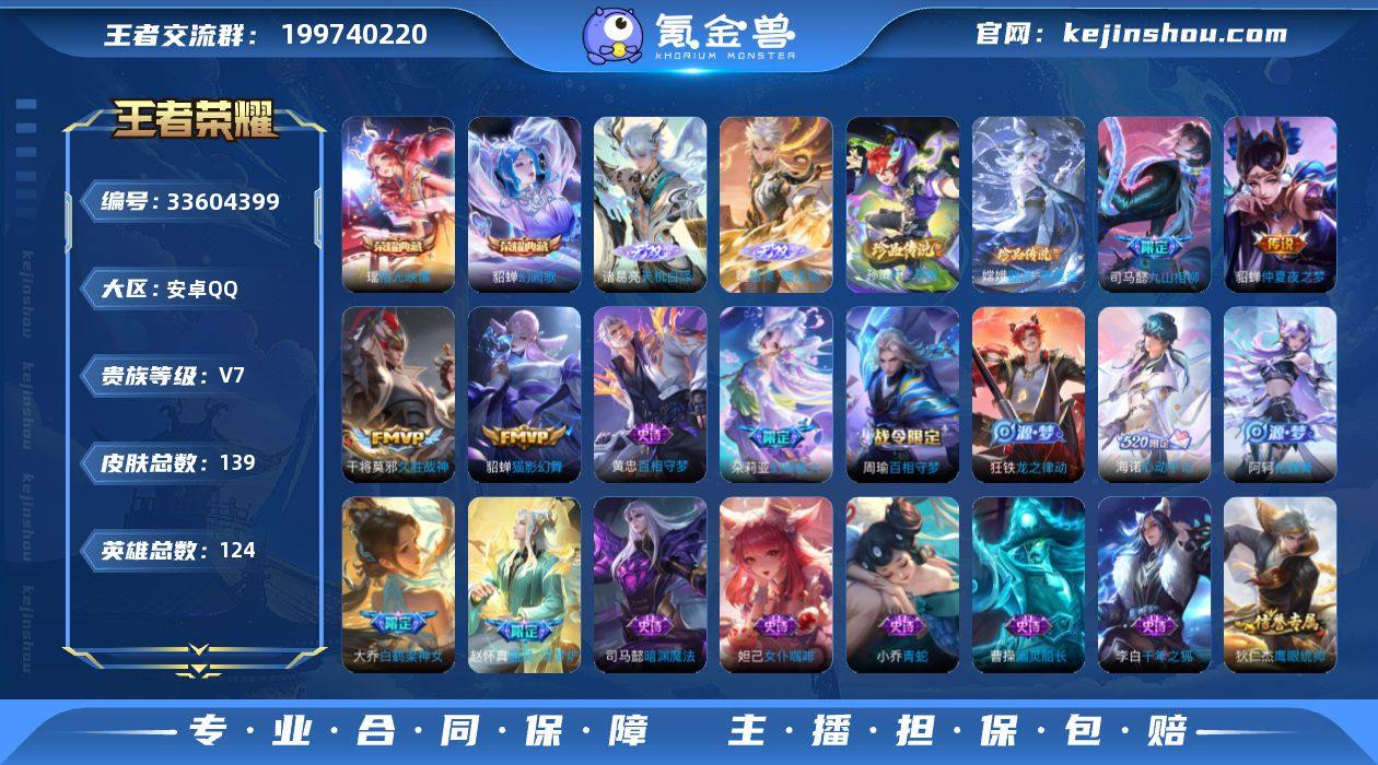 【店长主推精选号·天机白泽·器灵螭龙剑·幻阙歌·拾光映像·器灵落星盏·时之奇旅·神骥聚万邦·九山相柳·愿照千秋盛·愿照众生和·无二次包过】w23303-安卓Q-124英雄-139皮肤-4王者印记-126铭文-贵族积分3w【贵族7】【2典藏·2无双·2珍品·7传说·1天幕·14按键】【因赛季更新游戏段付以上号为准!】 【英雄全皮】:司马懿全皮,孙权全皮,影全皮,海诺全皮 【荣耀典藏】:貂蝉幻阙歌,瑶拾光映像 【无双皮肤】:诸葛亮天机白泽,曜器灵螭龙剑 【珍品传说】:嫦娥器灵落星盏,孙策时之奇旅 【天幕】:财神纳福天幕 【传说皮肤】:貂蝉神骥聚万邦,司马懿九山相柳,女娲愿照千秋盛,妲己愿照众生和,貂蝉猫影幻舞,干将莫邪久胜战神,貂蝉仲夏夜之梦 【限定皮肤】:狄仁杰阴阳师,赵云皇家上将,典韦穷奇,狄仁杰魔术师,项羽海滩派对,太乙真人饕餮,大乔白鹤梁神女,狂铁御狮,鬼谷子天穹祈灯,姬小满妄想食味,海诺心动手记 【年限皮肤】:女娲愿照千秋盛,妲己愿照众生和 【赛季限定】:太乙真人饕餮,典韦穷奇,狂铁御狮,鬼谷子天穹祈灯,太乙真人谧流熔炉,钟馗虚灵犬护,亚瑟荣光之誓,项羽九幽镇关 【战令限定】:周瑜百相守梦,孙策百相守梦,周瑜线条小狗,小乔线条小狗 【史诗...