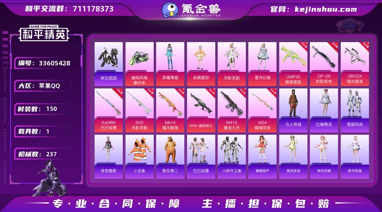 苹果【小号 套装-胖达团团,AKM-幽焰骑士(三级),M416-墨龙九天(三级),幽焰风驰摩托车】 手Q-4粉装-9特效枪-1载具-9粉色飞行器-73217热力值-4王牌印记-150套装-237枪皮 【热门品类】:套装-小丑鱼,套装-胖达团团 【粉色套装】:角色-呆萌星弥,角色-月影灵韵,粉装-雪月幻音,角色-异瞳寒姬 【粉色枪皮等级】:AKM-幽焰骑士(三级),M416-墨龙九天(三级),GROZA-镜光银凌(五级),UMP45-萌骑冒险(五级),Kar98K-巳巳如意(五级),M24-镜域双华(三级),Mk14-福马献瑞(四级),SVD-月影灵韵(五级),DP-28-豹影疾电(五级) 【粉色载具】:幽焰风驰摩托车 【粉色枪皮】:AKM-幽焰骑士,M416-墨龙九天,GROZA-镜光银凌,UMP45-萌骑冒险,Kar98K-巳巳如意,M24-镜域双华,Mk14-福马献瑞,SVD-月影灵韵,DP-28-豹影疾电 【粉色飞行器】:酣梦熊熊飞行器,炫彩糖果飞行器,祥瑞起舞飞行器,王牌四分卫飞行器,沙丘之主天马,镜域双华-灵镜之阶,龙翔九天飞行器,幽焰列车飞行器 【粉色降落伞】:绝对恒星降落伞,洛神天依降落伞,沙丘之主降落伞,镜域双华降落伞,墨龙九天降落伞,创世·救赎降落伞,时空协奏降落伞,英伦信使降落伞,幽焰骑士降落伞,千金淑猫降落伞,脆鲨七海降落伞,月...