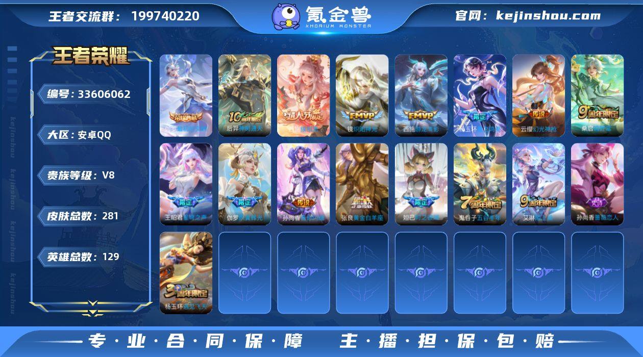 安卓Q 可二次 1典藏20传说129英雄281皮肤 最初的交响 乘龙问璇玑 神骥鸣幻洲 神树通天 星之鸣奏 续相思 幻光神枪 愿照岁时盈 愿照众生和 愿照九州拓 愿照福禄聚 鸣野蒿 启明星使 炽翼辉光 星穹之声 游龙清影 鹤归松栖女 音你闪耀 炽阳神光 黄金白羊座 末日机甲女 巫礼祀神 至美乘鲤谣 谪仙醉月 寅虎心曲 山海碧波行 幻珠鲛人 时之奇旅妲己 时之彼端 拒霜思 匿光侦查者 冰冠公主 原初追逐者 玫瑰异探 暗夜猫娘 诗语江南 银翎春语 织梦人 黄忠百相守梦 器灵浮梦炉 陌上桑 群星魔术团上官婉儿 乘龙忆丹青 燃音魔法 百解令 鹤归松栖男 真我赫兹百里 真我赫兹镜 匿光破解者 电玩兔顽号 神器万象笔 遇见神鹿 时之奇旅安琪 唤灵魅影 无限星赏官 水晶猎龙者 猫狗日记女 金属风暴 特工魅影 青蛇 蔷薇恋人 舞动绿茵 逐浪之夏 心灵战警 晚萤 魅语 紫霞仙子 心灵骇客 圣诞恋歌 幽灵船长 星夜王子 赏金猎手 王者荣耀账号