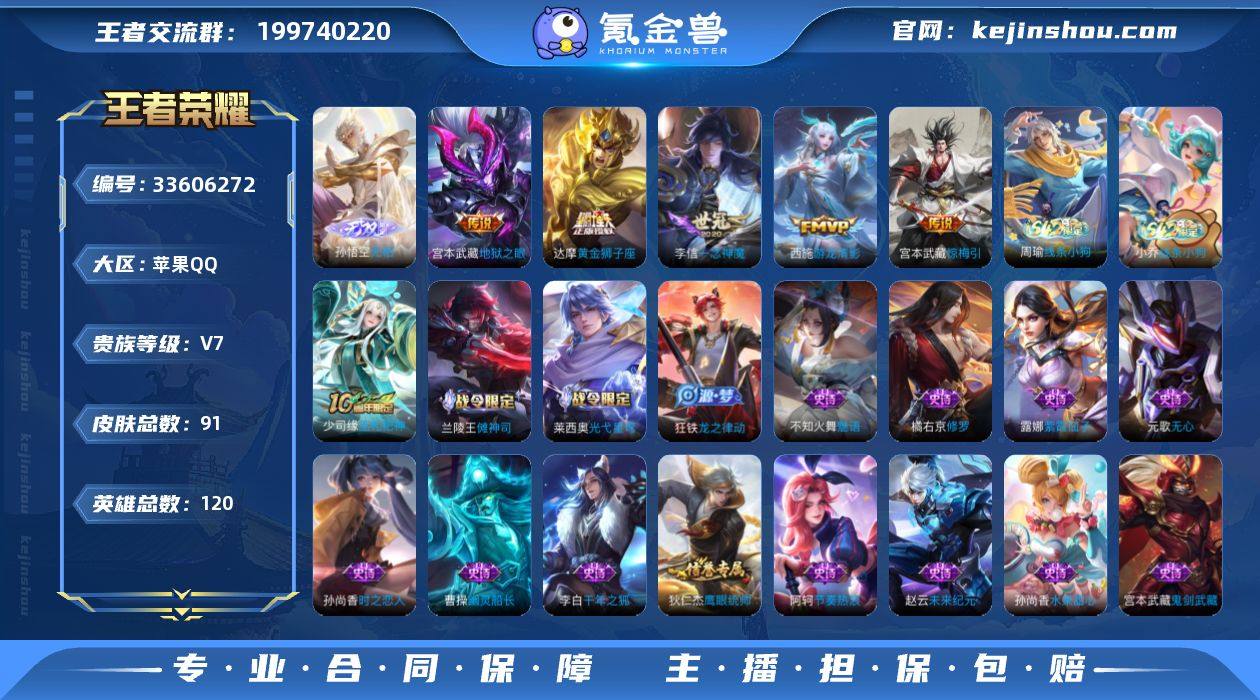 苹果Q-V7-永恒钻石I段位-120英雄-91皮肤-2无双-5传说-24史诗【英雄全皮】:敖隐全皮【无双皮肤】:李信问心剑,孙悟空无相【传说皮肤】:宫本武藏惊梅引,西施游龙清影,李信一念神魔,达摩黄金狮子座,宫本武藏地狱之眼【限定皮肤】:姜子牙天穹之誓,狄仁杰阴阳师,赵云皇家上将,元歌无心,狄仁杰魔术师,项羽海滩派对,裴擒虎擒涛扼浪,鬼谷子天穹祈灯,周瑜熔金海岸【赛季限定】:裴擒虎擒涛扼浪,鬼谷子天穹祈灯,姜子牙天穹之誓,东皇太一噬灭天穹,甄姬逆浪荇歌,亚瑟荣光之誓【战令限定】:孙悟空神迹守卫,兰陵王傩神司,莱西奥光弋星穹,明世隐往忆晖光,周瑜线条小狗,小乔线条小狗【史诗皮肤】:海月海之女神,周瑜线条小狗,小乔线条小狗,少司缘巫礼祀神,兰陵王傩神司,莱西奥光弋星穹,狂铁龙之律动,元歌无心,孙尚香时之恋人,橘右京修罗,不知火舞魅语,狄仁杰鹰眼统帅,阿轲节奏热浪,程咬金功夫厨神,李白千年之狐,曹操幽灵船长,刘禅绅士熊喵,妲己魅力维加斯,嬴政摇滚巨星,孙尚香水果甜心,宫本武藏鬼剑武藏,狄仁杰魔术师,王昭君偶像歌手,赵云未来纪元,赵云皇家上将,露娜紫霞仙子【其他皮肤】:影百相守梦,吕布舞狮寰,鲁班七号班班快跑,妲...