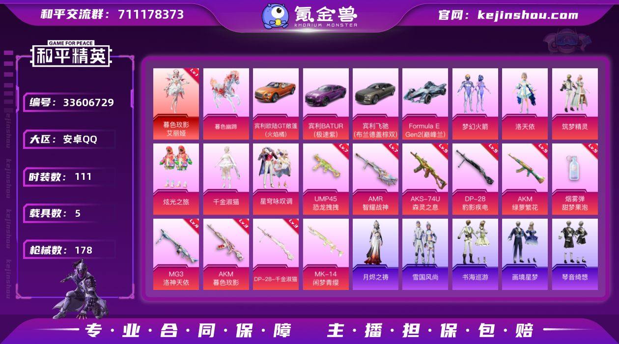 【LHPD242】【特价出售/店主推荐】安卓 手Q-1神装-6粉装-10特效枪-5载具-4粉色飞行器-62434热力值-12王牌印记-111套装-178枪皮【红色神装等级】:暮色玫影-艾丽娅(一级)【红色角色神装】:暮色玫影-艾丽娅【热门品类】:粉装-梦幻火箭,角色-2B战斗服款,套装-红熊茄茄【粉色套装】:粉装-梦幻火箭,角色-洛天依,粉装-筑梦精灵,粉装-炫光之旅,角色-千金淑猫,粉装-星穹咏叹调【粉色枪皮等级】:AKM-绿萝繁花(五级),AKM-暮色玫影(三级),UMP45-恐龙拽拽(七级),AKS-74U-森灵之息(五级),AMR-智耀战神(七级),DP-28-千金淑猫(三级),DP-28-豹影疾电(五级),MG3-洛神天依(四级),烟雾弹-甜梦果泡(五级)【粉色载具】:宾利欧陆GT敞篷(火焰橘),宾利BATUR(极速紫),宾利飞驰(布罗德盖棕双色),Formula E Gen2(巅峰兰),暮色幽蹄【粉色枪皮】:AKM-绿萝繁花,AKM-暮色玫影,UMP45-恐龙拽拽,AKS-74U-森灵之息,Mk14-闲梦青缨,AMR-智耀战神,DP-28-千金淑猫,DP-28-豹影疾电,MG3-洛神天依,烟雾弹-甜梦果泡【粉色飞行器】:梦幻火箭飞行器,沙丘之主天马,雀灵庇佑飞行器,暮色之舞飞行器