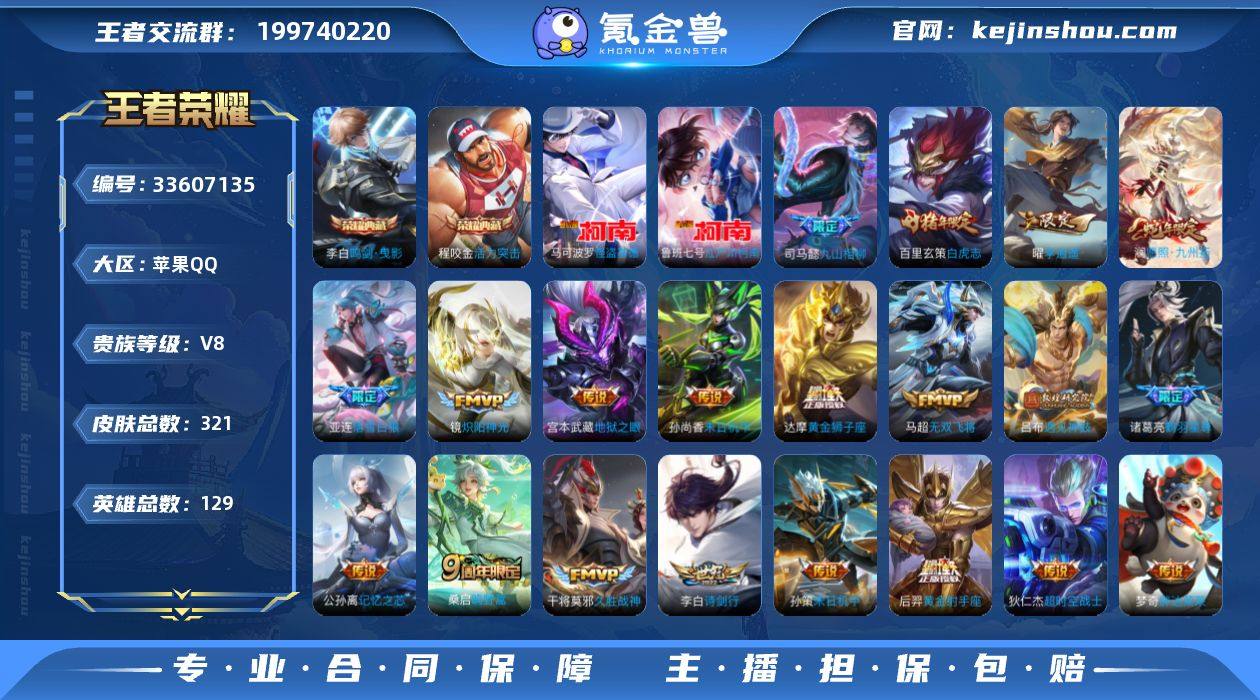 【特价出售】苹果Q-V8-至尊星耀III段位-129英雄-321皮肤-2典藏皮肤-2珍品传说-24传说-95史诗 【英雄全皮】:孙权全皮,赵怀真全皮 【荣耀典藏】:程咬金活力突击,李白鸣剑曳影 【珍品传说】:鲁班七号江户川柯南,马可波罗怪盗基德 【传说皮肤】:司马懿九山相柳,澜愿照九州拓,桑启鸣野蒿,庄周牧神诗旅,亚连落雪白狼,孙膑小动物乐团,吕布遇见神鼓,诸葛亮鹤羽星尊,公孙离记忆之芯,李白诗剑行,马超无双飞将,孙策末日机甲,曜李逍遥 ,镜炽阳神光,虞姬启明星使,张良黄金白羊座,干将莫邪久胜战神,达摩黄金狮子座,百里玄策白虎志,梦奇胖达荣荣,后羿黄金射手座,孙尚香末日机甲,宫本武藏地狱之眼,狄仁杰超时空战士 【限定皮肤】:姜子牙天穹之誓,狄仁杰阴阳师,赵云皇家上将,妲己热情桑巴,孙尚香蔷薇恋人,庄周高山流水,高渐离死亡摇滚,高渐离玩趣恶龙,钟无艳王者之锤,白起夜都怪侠,吕布御风骁将,吕布遇见神鼓,元歌云间偶戏,元歌无心,夏侯惇朔风刀,马可波罗逐梦之星,马可波罗山海玄木吟,狄仁杰魔术师,狄仁杰万华元夜,达摩星际陆战队,达摩沙漠行僧,项羽海滩派对,老夫子圣诞老人,老夫子醍醐杖,关羽冰锋战神,程咬金演武夺筹,韩信飞衡,王...
