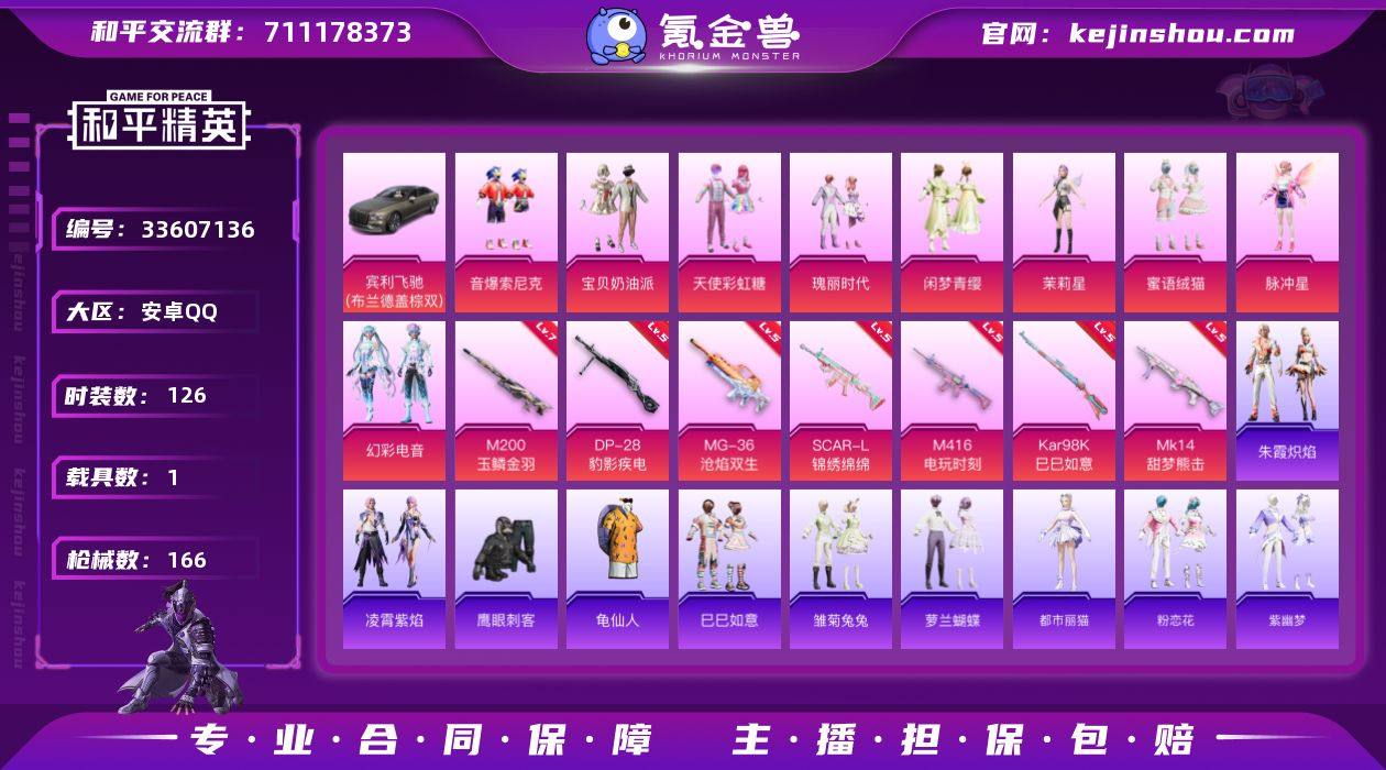 【7131】安卓 手Q-9粉装-7特效枪-1载具-0粉色飞行器-53175热力值-10王牌印记-126套装-166枪皮