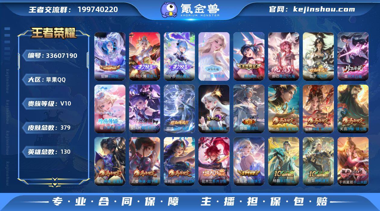 捡漏v10号 限定多多 王者印记数量8+按键数量38+星传说数量1+铭文150级+天幕1+小兵1 苹果Q-V10-至尊星耀V段位-130英雄-379皮肤-1典藏皮肤-1典藏英雄-5无双-5珍品传说-60传说-114史诗 【英雄全皮】:孙权全皮,不知火舞全皮,敖隐全皮,夏洛特全皮,金蝉全皮,戈娅全皮,空空儿全皮,影全皮,海诺全皮 【荣耀典藏】:武则天英雄,貂蝉幻阙歌 【无双皮肤】:甄姬雪境奇遇,不知火舞花合斗,小乔时之魔女,瑶真我赫兹,妲己青丘九尾 【珍品传说】:伽罗沧流箭,暃朽木白哉,安琪拉酷洛米之心,瑶大耳狗之梦,嫦娥器灵落星盏 【传说皮肤】:韩信踏浪归,云缨神骥越千峰,关羽神骥镇沧海,朵莉亚神骥鸣幻洲,狄仁杰神骥赴朔漠,貂蝉神骥聚万邦,马超神骥逐星野,花木兰异界灵契,王昭君长夜焕生,杨戬纵目迁山,后羿神树通天,干将莫邪千山共赴,杨玉环星之鸣奏,后羿千劫归真,司空震愿照山河定,女娲愿照千秋盛,妲己愿照众生和,澜愿照九州拓,蔡文姬愿照福禄聚,虞姬愿照岁时盈,朵莉亚心动手记,孙尚香乘龙问璇玑,孙策乘龙淬吴钩,赵云乘龙铭钟鼎,马超琥珀纪元,铠琥珀纪元,澜逐花归海,艾琳觅芳踪,诸葛亮鹤羽星尊,澜电玩雷克斯,亚瑟追逃游戏,安琪拉追逃游戏,张飞百相...