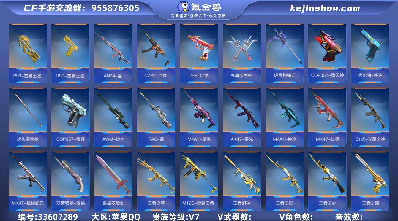 ✨王幻+王迹雷暴王者手枪+2套王者雷+奉先 星象 仲达 仁德 慈 妙才+6COP+游骑兵+6烈龙✨『400V-VIP7-显血戒-157级』 【王者武器】:/王者幻神/王者之影/王者之心/王者之尊/王者之神-冰霜奇迹/王者之蝶/P90-雷暴王者/M12S-雷霆王者/USP-雷暴王者/王者之迹/王者之魂/王者之隐/雷暴王者雷套/王兽雷套/ 【热门武器】:/AK47-奉先/M4A1-星象/M4A1-仲达/MK47-仁德/TAC-慈/AWM-妙才/AN94-盖/CZS2-仲康/M4A1-游骑兵-紫魇/81式-光明之神/MK47-机械纪元/6烈龙/ 【副武器】:/COP357-雷霆/COP357-堕天神/COP357-云龙/COP357-绚樱/COP357-A/USP-仁德/柯尔特-仲达/双管猎枪-威侯/黄金风之子/ 【近战】:/雌雄双股剑/虎头湛金枪/激昂霸王枪/虎贲钩镰刀/气勇胆烈戟/ 【角色】:/蝉/关小雨/瞳/炽天使-X/葵/ 【其他】:/4语音卡/10音效卡(仲达 幻神)/5消灭音效/狙击枪线-诸神黄昏/