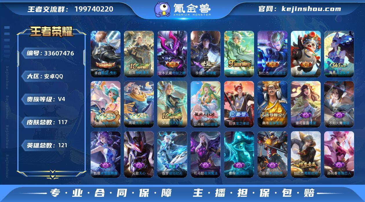 编号A01610 可二次 v4 117皮肤 1典藏 6传说 鸣剑·曳影 鸣野蒿 神树通天 鹤鸣心笺 狄仁杰-超时空战士 地狱之眼 胖达荣荣 一念神魔 涂山容容 幽灵船长 吕布-末日机甲