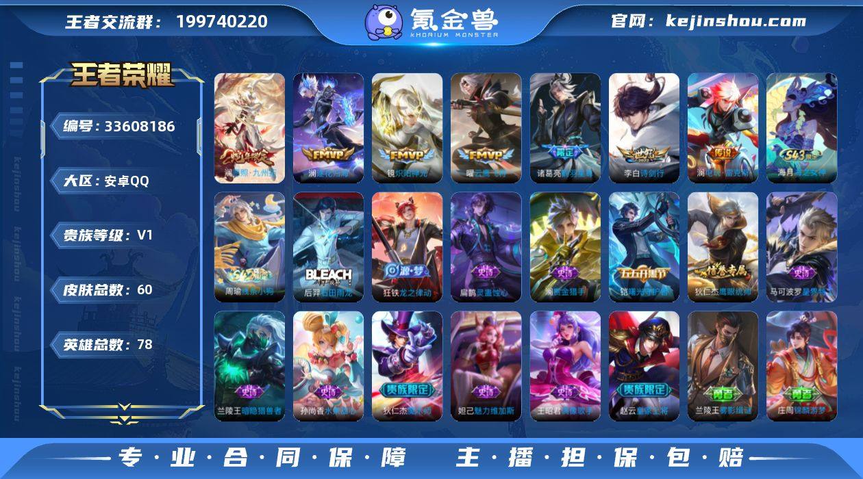 【V7极品自玩打野号·7传说·李白诗剑行·低价出速抢】安卓Q-V0-永恒钻石V段位-78英雄-60皮肤-7传说-13史诗 【英雄全皮】:澜全皮 【传说皮肤】:澜愿照九州拓,澜逐花归海,诸葛亮鹤羽星尊,澜电玩雷克斯,李白诗剑行,镜炽阳神光,曜云鹰飞将 【限定皮肤】:狄仁杰阴阳师,赵云皇家上将,狄仁杰魔术师,项羽海滩派对,李元芳云中旅人,诸葛亮鹤羽星尊,沈梦溪大漠名商,鲁班大师探海日志,桑启海盐诗旅 【年限皮肤】:澜愿照九州拓 【赛季限定】:沈梦溪大漠名商,李元芳云中旅人,桑启海盐诗旅,鲁班大师探海日志,太乙真人谧流熔炉,钟馗虚灵犬护,甄姬逆浪荇歌 【战令限定】:周瑜线条小狗 【史诗皮肤】:海月海之女神,周瑜线条小狗,后羿石田雨龙,扁鹊灵蛊蚀心,狂铁龙之律动,马可波罗星界特工,澜赏金猎手,狄仁杰鹰眼统帅,铠曙光守护者,兰陵王暗隐猎兽者,妲己魅力维加斯,孙尚香水果甜心,狄仁杰魔术师,王昭君偶像歌手,赵云皇家上将 【其他皮肤】:兰陵王雾影缉谜,庄周锦麟游梦,甄姬逆浪荇歌,白起死霸装,姬小满小满鸭,露娜命运加冕,阿古朵布丁狗之约,张良灵野札记,苏烈春野闲踪,钟馗虚灵犬护,刘备浪漫序章,戈娅玫蓝誓约,明世隐景韶洛都,太乙真人谧...