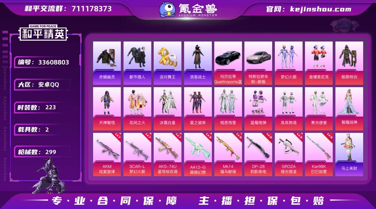 【极品男神身法素材号·梦幻火箭·赤蝎幽灵·都市猎人·金鞋·哥特·地铁满天赋】安卓 手Q-12粉装-8特效枪-2载具-4粉色飞行器-96981热力值-17王牌印记-223套装-299枪皮 【热门品类】:粉装-梦幻火箭,粉装-音爆索尼克,套装-浪漫天命,套装-赤蝎幽灵,套装-都市猎人,套装-派对舞王,套装-暗夜行者,套装-浪客战士,旭日初心兜帽大衣,套装-龟仙人,套装-暗影哥特,套装-粉红小猪 【粉色套装】:粉装-极限特训,粉装-梦幻火箭,粉装-天禅智恒,粉装-花间之火,粉装-冰霜白皇,粉装-星之彼岸,粉装-相思残雪,粉装-蓝莓炮弹,粉装-岚岚物语,粉装-寒光使者,粉装-音爆索尼克,角色-智耀战神 【粉色枪皮等级】:AKM-炫紫旋律(七级),SCAR-L-梦幻火箭(七级),GROZA-镜光银凌(五级),AKS-74U-星穹咏叹调(七级),Kar98K-巳巳如意(五级),Mk14-福马献瑞(五级),AA12-G-萌骑幻想(五级),DP-28-豹影疾电(五级) 【粉色载具】:特斯拉Roadster(沁心粉),玛莎拉蒂Quattroporte(夜幕蓝) 【粉色枪皮】:AKM-炫紫旋律,SCAR-L-梦幻火箭,GROZA-镜光银凌,AKS-74U-星穹咏叹调,Kar98K-巳巳如意,Mk14-福马献瑞,AA12-G-萌骑幻想,DP-28-豹影疾电 【粉色飞行器】:炫彩糖果飞行器,梦幻火箭飞行...