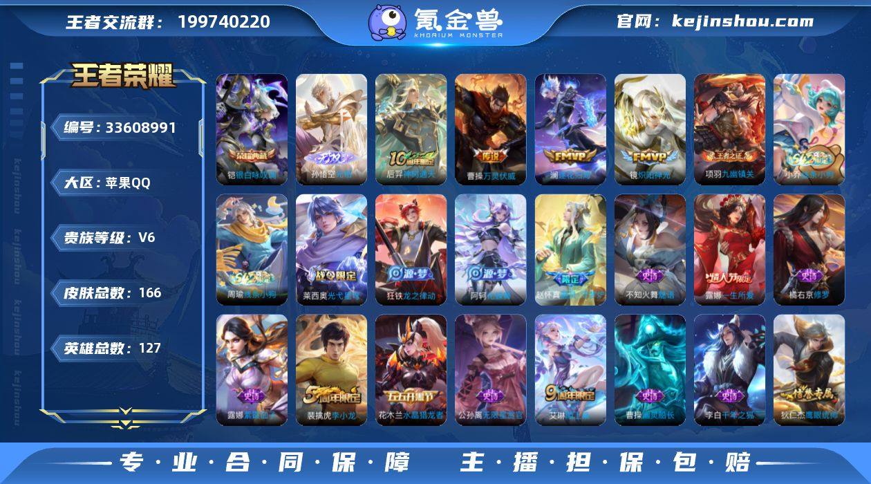 苹果手Q98区166皮1典藏4传说1无双V4 营地ID233893272最强王者【无双皮肤】:无相【荣耀典藏】:银白咏叹调【传说皮肤】:逐花归海,万灵伏威,神树通天,炽阳神光【史诗皮肤】:乱世虎臣,星界战将,幽灵船长,线条小狗,乘风破浪,偶像歌手,九幽镇关,天才门将,黄金分割率,龙之律动,魔术师,千年之狐,光弋星穹,黎明之约,逐浪之夏,节奏热浪,修罗,万物之道,李小龙,特工魅影,顽趣,原初追逐者,皇家上将,魅语,一生所爱,无限星赏官,鹰眼统帅,水果甜心,紫霞仙子,荣光圣徽,鬼剑武藏,水晶猎龙者,化蝶舞,器灵·浮梦炉,陌上桑,魅力维加斯