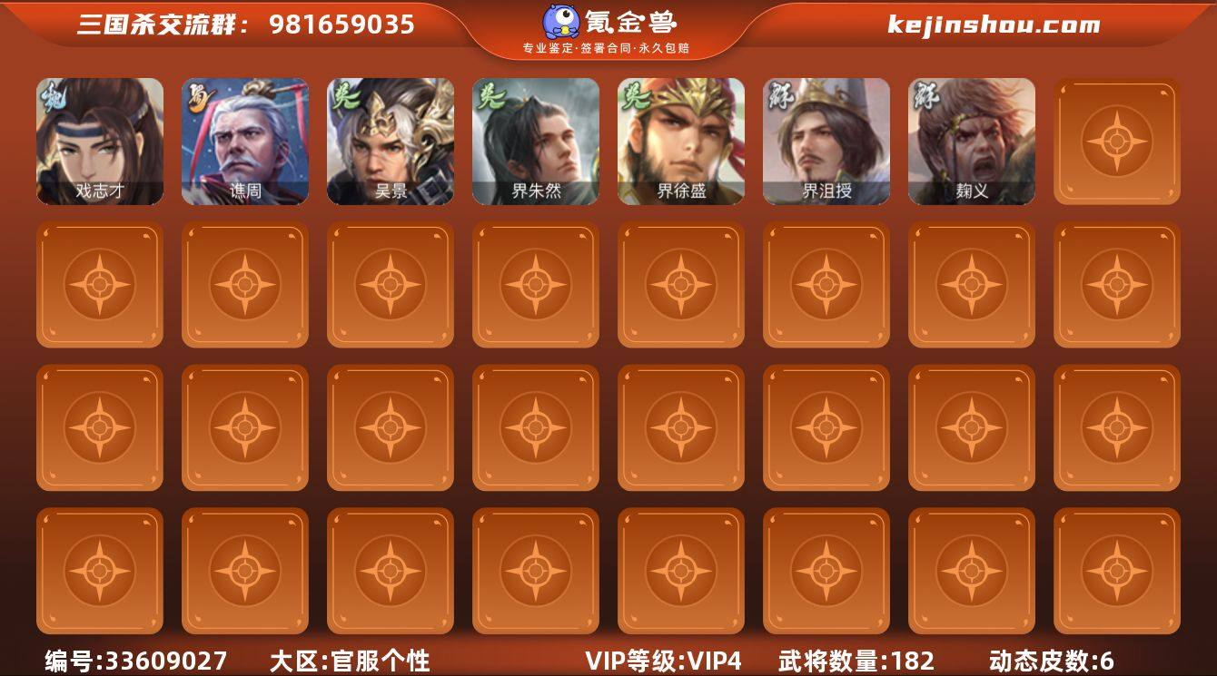 标题:S37288 VIP等级:VIP4 官阶:中军将军 史诗武将数量:9 动态皮肤数量:6 史诗宝珠数量:1 将魂数量:250 雁翎数量:9204 心愿积分:2873 史诗武将(魏国):戏志才,势国渊,程昱 史诗武将(蜀国):谯周 史诗武将(吴国):界徐盛,界朱然,吴景 史诗武将(群雄):麹义,界沮授