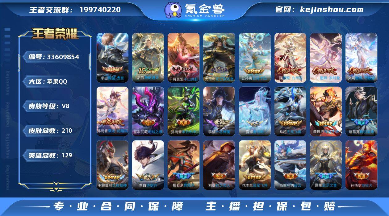 苹果Q-V8-至尊星耀IV段位-129英雄-210皮肤-1典藏皮肤-26传说-51史诗【英雄全皮】:孙权全皮,敖隐全皮【荣耀典藏】:李白鸣剑曳影【传说皮肤】:云缨神骥越千峰,马超神骥逐星野,后羿神树通天,干将莫邪千山共赴,大司命死亡执政官,公孙离云诺千山,女娲愿照千秋盛,澜愿照九州拓,虞姬愿照岁时盈,裴擒虎祥瑞亨通,孙尚香乘龙问璇玑,露娜霜月吟,诸葛亮鹤羽星尊,李白诗剑行,百里守约碎云,橘右京枫霜尽,马超无双飞将,露娜启示之音,虞姬启明星使,李信一念神魔,刘备时之恋人,干将莫邪久胜战神,花木兰冠军飞将,孙尚香末日机甲,宫本武藏地狱之眼,孙悟空地狱火【限定皮肤】:白起狰,狄仁杰阴阳师,虞姬凯尔特女王,赵云皇家上将,扁鹊炼金王,元歌无心,夏侯惇朔风刀,曹操烛龙,典韦穷奇,马可波罗暗影游猎,狄仁杰魔术师,狄仁杰万华元夜,项羽海滩派对,老夫子醍醐杖,程咬金演武夺筹,露娜启示之音,韩信飞衡,橘右京枫霜尽,孙悟空至尊宝,孙悟空孙行者,牛魔御旌,虞姬启明星使,干将莫邪冰霜恋舞曲,太乙真人饕餮,鬼谷子原初探秘者,诸葛亮鹤羽星尊,百里玄策原初追逐者,弈星混沌棋,明世隐疑决卦,裴擒虎天狼狩猎者,裴擒虎李小龙,裴擒虎擒涛扼浪,狂...