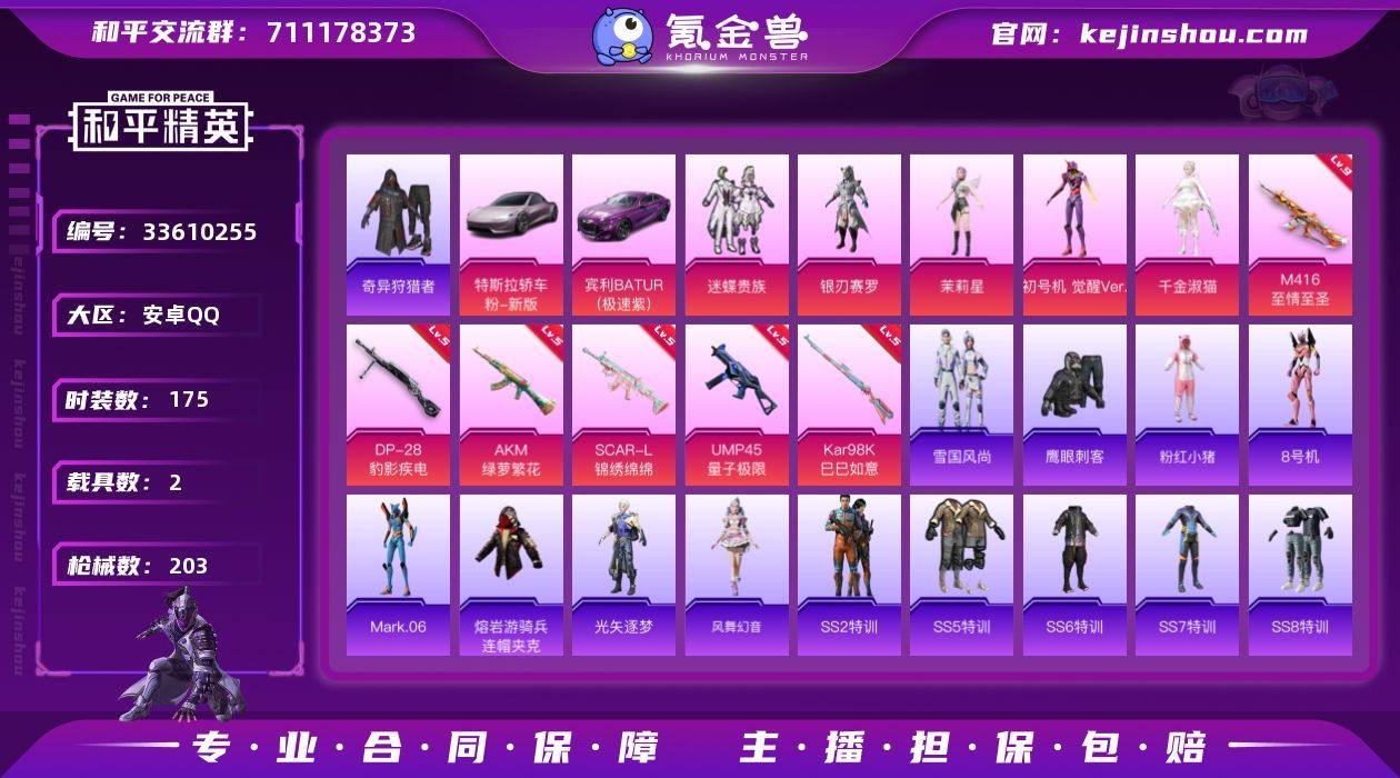 【LHPX2513】【满级m4至情至胜奇异ss1特训8号机觉醒螳螂6号机双载具精品号】安卓 手Q-5粉装-6特效枪-2载具-0粉色飞行器-64607热力值-8王牌印记-175套装-203枪皮 【热门品类】:套装-奇异狩猎者,套装-SS1特训,套装-粉红小猪,角色-8号机,角色-Mark.06,熔岩游骑兵连帽夹克 【粉色套装】:粉装-迷蝶贵族,粉装-银刃赛罗,角色-茉莉星,角色-初号机 觉醒Ver.,角色-千金淑猫 【粉色枪皮等级】:AKM-绿萝繁花(五级),SCAR-L-锦绣绵绵(五级),M416-至情至圣(九级),UMP45-量子极限(五级),Kar98K-巳巳如意(五级),DP-28-豹影疾电(五级) 【粉色载具】:特斯拉Roadster(沁心粉),宾利BATUR(极速紫) 【粉色枪皮】:AKM-绿萝繁花,SCAR-L-锦绣绵绵,M416-至情至圣,UMP45-量子极限,Kar98K-巳巳如意,DP-28-豹影疾电 【粉色降落伞】:凝视深渊降落伞,四圣焕新降落伞,阿狸红降落伞,夏日绵绵冰降落伞,银刃赛罗降落伞,香水柠檬降落伞,碧影闪光降落伞,闲梦青缨降落伞,初号机 觉醒Ver.降落伞 【稀有套装】:套装-雪国风尚,角色-光矢逐梦,套装-风舞幻音 【稀有枪皮】:AKM-四圣焕新,AKM-夜灯,AKM-彩虹符号,AKM-春暖花开,AKM-江南烟雨,AKM-破晓战魂,AKM-龙的传人,M16A...