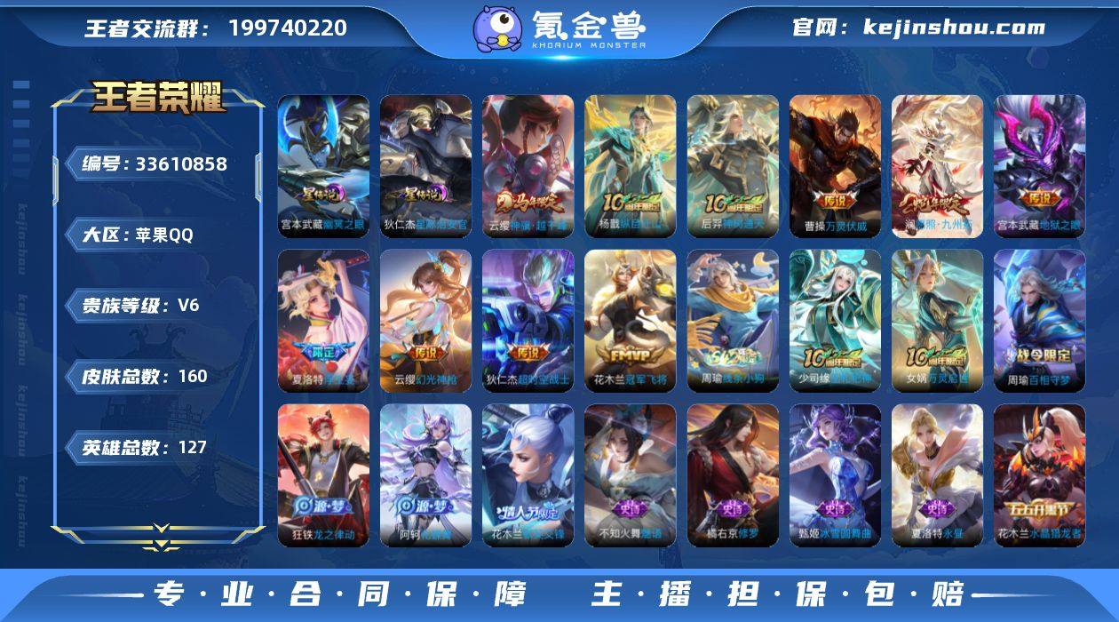 苹果手Q135区160皮0典藏10传说0无双V6 营地ID1685979506至尊星耀I【传说皮肤】:神骥·越千峰,冠军飞将,地狱之眼,纵目迁山,神树通天,万灵伏威,幻光神枪,愿照·九州拓,超时空战士,浮生妄【史诗皮肤】:猫狗日记,乘风破浪,魅语,巫礼祀神,万灵启世,特工魅影,百相守梦,乱世虎臣,幽灵船长,心灵骇客,龙之律动,化蝶舞,星夜王子,茶境仙,暗隐猎兽者,战舞者,糖绘人间,魔术师,蔷薇恋人,节奏热浪,冰雪圆舞曲,永昼,逐浪之夏,水果甜心,天才门将,鬼剑武藏,苍穹之光,皇家上将,水晶猎龙者,白龙吟,修罗,未来纪元,默契交锋,鹰眼统帅,魅力维加斯,猫狗日记