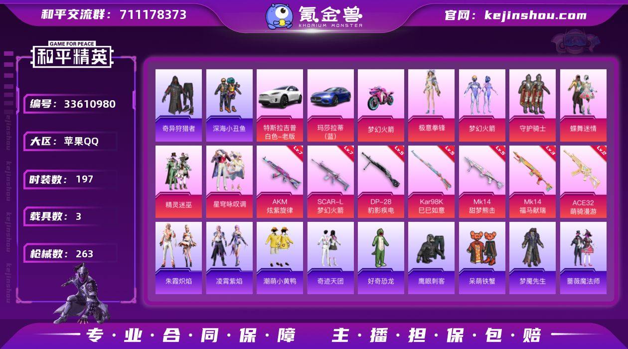【kyhp1591】苹果 手Q-6粉装-7特效枪-3载具-4粉色飞行器-82852热力值-16王牌印记-197套装-263枪皮 【热门品类】:粉装-梦幻火箭,套装-浪漫天命,套装-深海小丑鱼,套装-小丑鱼,套装-奇异狩猎者,套装-潮萌小黄鸭,套装-暗影哥特 【粉色套装】:粉装-守护骑士,粉装-蝶舞迷情,粉装-精灵迷巫,粉装-梦幻火箭,粉装-星穹咏叹调,粉装-极意拳锋 【粉色枪皮等级】:AKM-炫紫旋律(七级),SCAR-L-梦幻火箭(七级),ACE32-萌骑漫游(二级),Kar98K-巳巳如意(五级),Mk14-甜梦熊击(五级),Mk14-福马献瑞(三级),DP-28-豹影疾电(五级) 【粉色载具】:特斯拉Model X(珍珠白),玛莎拉蒂Ghibli(蓝),双人摩托-梦幻火箭 【粉色枪皮】:AKM-炫紫旋律,SCAR-L-梦幻火箭,ACE32-萌骑漫游,Kar98K-巳巳如意,Mk14-甜梦熊击,Mk14-福马献瑞,DP-28-豹影疾电 【粉色飞行器】:春暖花开飞行器,精灵迷巫飞行器,梦幻火箭飞行器,歌者泠鸢飞行器 【粉色降落伞】:至尊龙雀降落伞,春暖花开降落伞,精灵迷巫降落伞,梦幻火箭降落伞,星之信仰降落伞,炫紫旋律降落伞,海渊国主降落伞,圣光天使降落伞,炫彩糖果降落伞 【稀有套装】:套装-雏菊兔兔,套装-萝兰蝴蝶,套装-小熊娃娃,角色-糖霜甜心...