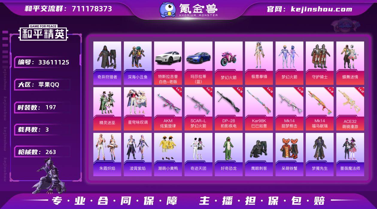 【kyhp1591】苹果 手Q-6粉装-7特效枪-3载具-4粉色飞行器-82852热力值-16王牌印记-197套装-263枪皮 【热门品类】:粉装-梦幻火箭,套装-浪漫天命,套装-深海小丑鱼,套装-小丑鱼,套装-奇异狩猎者,套装-潮萌小黄鸭,套装-暗影哥特 【粉色套装】:粉装-守护骑士,粉装-蝶舞迷情,粉装-精灵迷巫,粉装-梦幻火箭,粉装-星穹咏叹调,粉装-极意拳锋 【粉色枪皮等级】:AKM-炫紫旋律(七级),SCAR-L-梦幻火箭(七级),ACE32-萌骑漫游(二级),Kar98K-巳巳如意(五级),Mk14-甜梦熊击(五级),Mk14-福马献瑞(三级),DP-28-豹影疾电(五级) 【粉色载具】:特斯拉Model X(珍珠白),玛莎拉蒂Ghibli(蓝),双人摩托-梦幻火箭 【粉色枪皮】:AKM-炫紫旋律,SCAR-L-梦幻火箭,ACE32-萌骑漫游,Kar98K-巳巳如意,Mk14-甜梦熊击,Mk14-福马献瑞,DP-28-豹影疾电 【粉色飞行器】:春暖花开飞行器,精灵迷巫飞行器,梦幻火箭飞行器,歌者泠鸢飞行器 【粉色降落伞】:至尊龙雀降落伞,春暖花开降落伞,精灵迷巫降落伞,梦幻火箭降落伞,星之信仰降落伞,炫紫旋律降落伞,海渊国主降落伞,圣光天使降落伞,炫彩糖果降落伞 【稀有套装】:套装-雏菊兔兔,套装-萝兰蝴蝶,套装-小熊娃娃,角色-糖霜甜心...