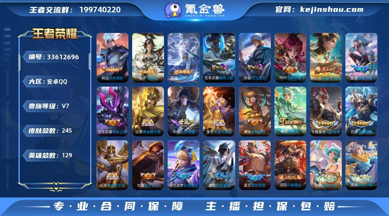 安卓手Q186区245皮1典藏15传说0无双2珍品传说V7 营地ID493968561永恒钻石II【珍品传说皮肤】:沧流箭,器灵·落星盏【荣耀典藏】:弑枪猎影【传说皮肤】:罗刹妄海,神骥·赴朔漠,地狱之眼,妄想实况,战鼓燎原,鸣野蒿,时之恋人,久胜战神,黄金狮子座,黄金射手座,云霓雀翎,一念神魔,怒海麟威,黄金天蝎座,落雪白狼【史诗皮肤】:电玩小子,千筹问战,罗小黑战记,撼世英歌,线条小狗,无心,奇遇舞章,九幽镇关,心灵骇客,光弋星穹,荣光圣徽,织梦人,涂山容容,百相守梦,皇家上将,黎明之约,冰冠公主,驯魔猎人,银河之约,狮舞东方,偶像歌手,白昼王子,燃音魔法,星界战将,魅力维加斯,蔷薇恋人,鹰眼统帅,魔术师,龙之律动,纤云弄巧,繁星吟游,紫霞仙子,原初追逐者,梁祝,德古拉伯爵,千年之狐,幽灵船长,特工魅影,如梦令,末日机甲,星界特工,星夜王子,箭羽风息,水果甜心,朱雀志,时之恋人,圣诞狂欢,遇见神鹿,乘风破浪,拒霜思,冰雪圆舞曲,水晶猎龙者,魅语,猫狗日记,暗隐猎兽者,绅士熊喵,逐浪之夏,时之彼端,百解令,暗夜贵公子,摇滚巨星,修罗,鬼剑武藏,大圣娶亲,浮光幕影,曙光守护者