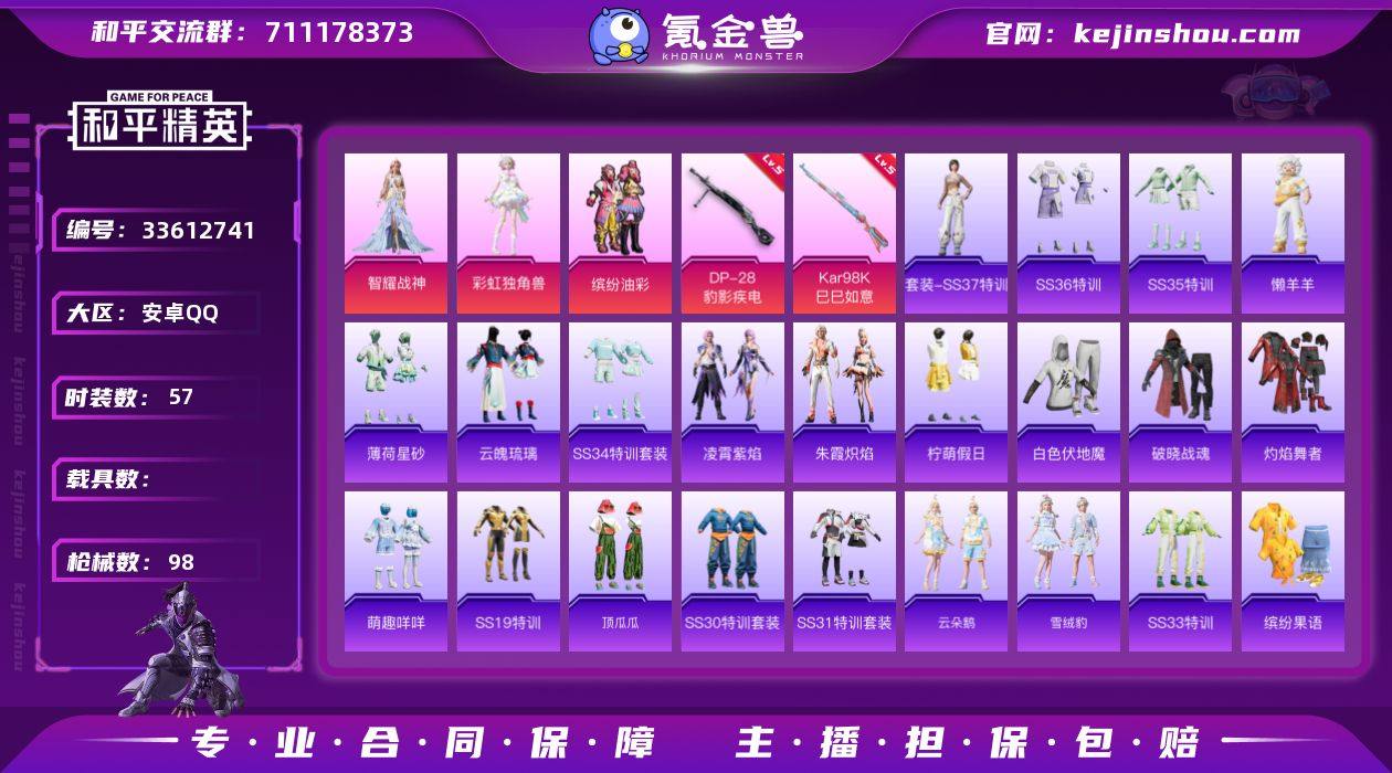 "H7111猪脸女号素材号 有二次 安卓Q-段位铂金 53级 8印记 57套装98枪皮 【3粉装】 缤纷油彩 角色-智耀战神 角色-彩虹独角兽 【2特效枪】 DP-28-豹影疾电 5级 Kar98K-巳巳如意 5级 【热门】 角色-都市丽猫 玩偶服-懒羊羊 角色-猎影月神 小熊娃娃 绒宝小鹅 "