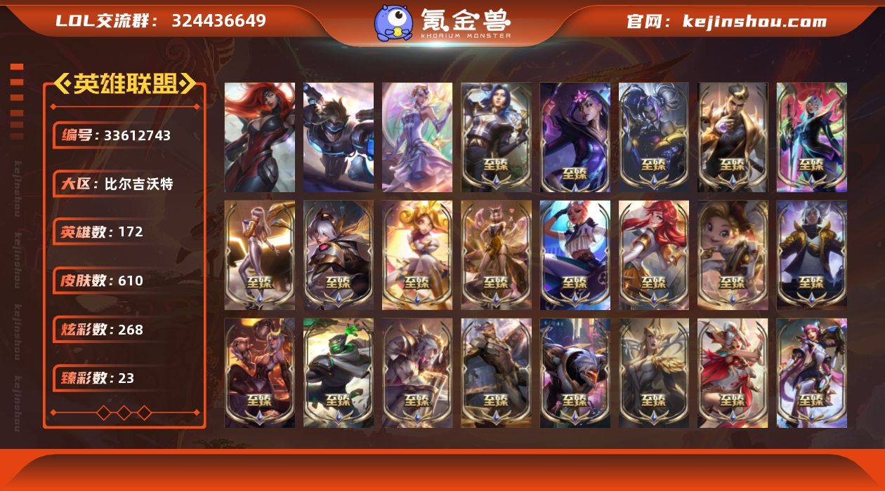 t40142【艾欧尼亚】610皮肤 268炫彩 23臻彩 37神话/94限定/76传说/172英雄 账号等级:594【重要头像】爱意绵绵 KDA萨勒芬妮 EDG厄斐琉斯 EDG佛耶戈 EDG格雷福斯 EDG悠米 EDG佐伊 灵魂莲华阿狸炫彩 灵魂莲华阿狸 星守金克丝炫彩 灵魂莲华辛德拉 幻灵战斗猫金克丝炫彩 幻灵战队猫金克丝 烈焰美人薇恩 披萨鸡 送披萨的小姐姐希维尔 神龙烈焰金克丝炫彩 不错哦 至臻幻灵战斗猫金克丝 至臻奥术师佐伊 【重要皮肤】双城之战2指挥官凯特琳至臻 暗星女王黛安娜至臻 魔域梦魇泽丽至臻 T1杰斯至臻 至高天凯尔至臻 天龙之子伊泽瑞尔至臻 心之钢永恩至臻 剪纸仙灵希维尔至臻 青花瓷丽桑卓至臻 星之守护者辛德拉至臻 幻灵战斗猫金克丝至臻 神凰行者烈羽焰凰霞至臻 女帝黛安娜至臻 魔女乐芙兰至臻 奥术师佐伊至臻 真实伤害亚索至臻 源计划逆流塞拉斯至臻 源计划阴劫至臻 征服者贾克斯至臻 KDA一代卡莎至臻 KDA阿狸至臻 战斗学院拉克丝至臻 烈焰美人薇恩至臻 星之守护者妮蔻至臻 源计划正义艾瑞莉娅至臻 真实伤害奇亚娜至臻 殿堂传奇乐芙兰 海克斯科技雷克顿 海克斯科技斯维因 海克斯科技阿利斯塔 水晶掠夺者卡兹克 零之枪骑赫卡里姆 摄...