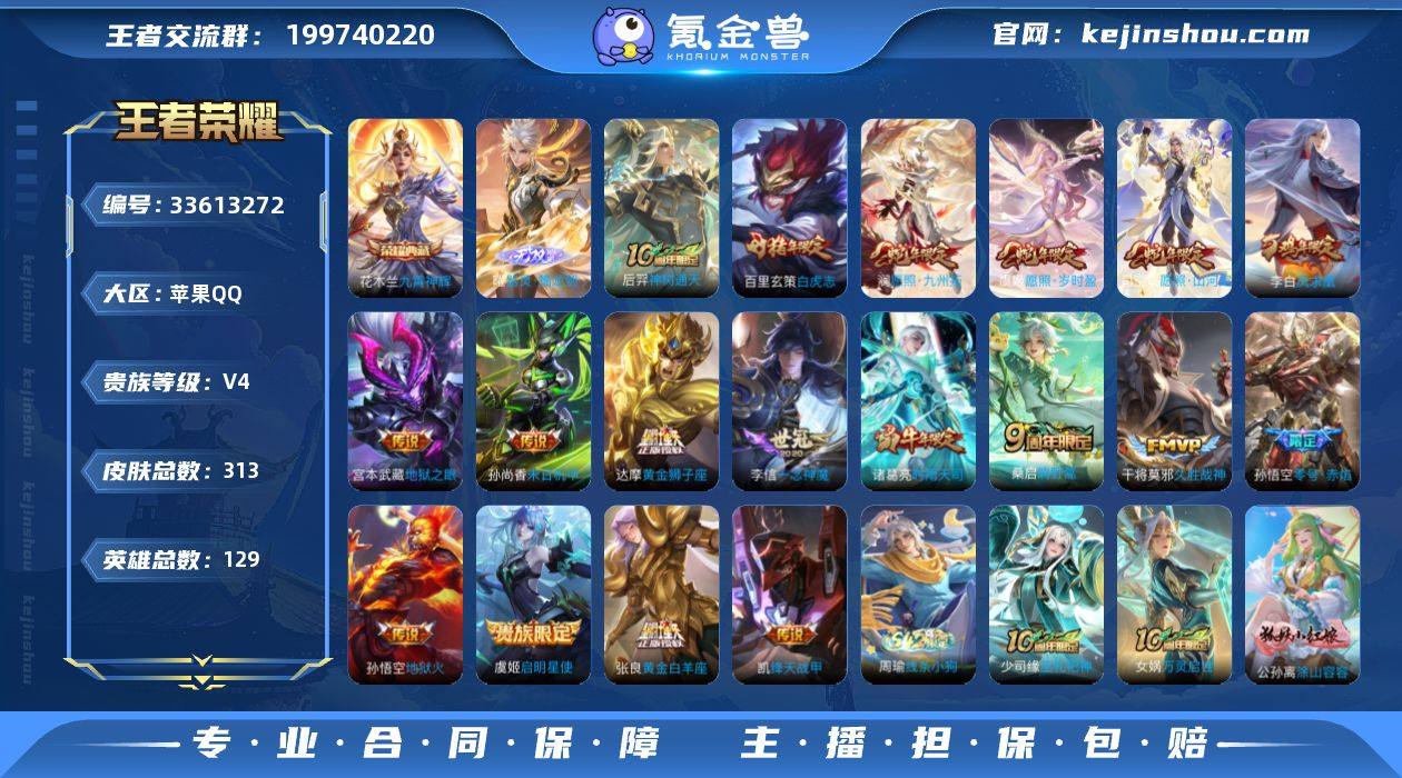 苹果Q-V4-尊贵铂金II段位-129英雄-313皮肤-1典藏皮肤-1无双-18传说-86史诗 【英雄全皮】:孙权全皮,空空儿全皮 【荣耀典藏】:花木兰九霄神辉 【无双皮肤】:曜器灵螭龙剑 【传说皮肤】:后羿神树通天,司空震愿照山河定,澜愿照九州拓,虞姬愿照岁时盈,桑启鸣野蒿,诸葛亮时雨天司,铠绛天战甲,虞姬启明星使,孙悟空零号赤焰,李信一念神魔,张良黄金白羊座,干将莫邪久胜战神,达摩黄金狮子座,百里玄策白虎志,李白凤求凰,孙尚香末日机甲,宫本武藏地狱之眼,孙悟空地狱火 【限定皮肤】:白起狰,姜子牙天穹之誓,狄仁杰阴阳师,赵云皇家上将,墨子神迹守卫,嬴政白昼王子,孙尚香蔷薇恋人,鲁班七号狮舞东方,庄周高山流水,高渐离玩趣恶龙,阿轲迷踪丽影,钟无艳王者之锤,芈月重明,吕布猎兽之王,吕布御风骁将,元歌云间偶戏,元歌无心,夏侯惇朔风刀,曹操烛龙,典韦穷奇,马可波罗暗影游猎,马可波罗山海玄木吟,狄仁杰魔术师,狄仁杰万华元夜,达摩沙漠行僧,项羽海滩派对,老夫子醍醐杖,老夫子航海奇遇记,关羽冰锋战神,貂蝉逐梦之音,程咬金演武夺筹,露娜一生所爱,刘邦夺宝奇兵,韩信逐梦之影,韩信飞衡,兰陵王金庭之子,亚瑟潮玩骑士王,孙悟空至尊宝,...