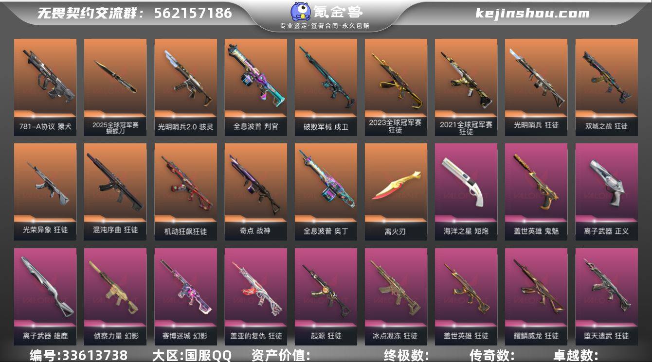 【wwxb819】LV等级117/皮肤总价值93600/段位未定级/总皮肤数量155/刀皮数量12/枪皮数量143/套装数量7/具体详情请看图/离火刃/2025全球冠军赛套装/2024全球冠军赛套装/2022全球冠军赛套装/2021全球冠军赛/VCTxEDG 队伍套装/盖世英雄/幻棱/炼狱/维斯/暮蝶/钛狐/壹决/铁臂/捷风/雷兹/幽影/不死鸟/贤者/猎枭/蝰蛇/零/芮娜/奇乐/尚勃勒/霓虹/斯凯/夜露/星礈/K/O/海神/盖可/黑梦/钢锁/2025全球冠军赛 蝴蝶刀/近战武器-2024全球冠军赛战刀/2022全球冠军赛 蝴蝶刀/近战武器-2021全球冠军赛爪刀/近战武器-碎心裂刃/近战武器-5周年公测重制版苍龙之刃/近战武器-离火刃/近战武器-流星兵团短剑/近战武器-定海神珍/近战武器-合金战车军刀/近战武器-沙尘幻旅匕首/近战武器-日耀风暴遗器/2025全球冠军赛-狂徒/狂徒-2023全球冠军赛/狂徒-2021全球冠军赛/狂徒-光明哨兵/狂徒-归零者/狂徒-混沌序曲/狂徒-机动狂飙/狂徒-全息波普2.0/狂徒-双城之战/狂徒-创纪元/狂徒-RGX11zPro/狂徒-光荣异象/狂徒-千灵华绽//2.0/超时空卫队 狂徒/狂徒-般若假面2.0/狂徒-冰点凝冻/狂徒-堕天遗武/狂徒-掠影/狂徒-盖世英雄/狂徒-盖亚的复仇/狂徒-海洋之星/狂徒-起源/狂徒-耀鳞威龙/狂徒-紫阙金琅/狂徒-离子武器2.0/...