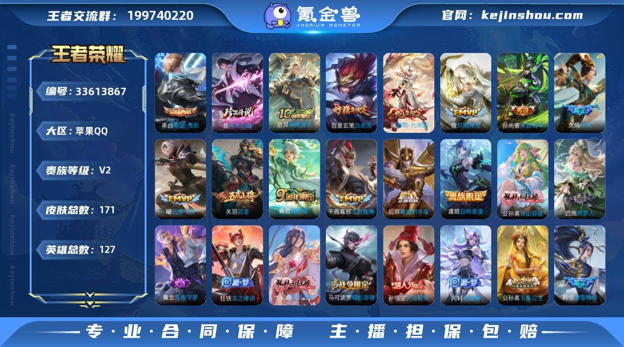 苹果Q-V2-至尊星耀III段位-127英雄-171皮肤-1典藏皮肤-1珍品传说-12传说-57史诗 【英雄全皮】:孙权全皮 【荣耀典藏】:李白鸣剑曳影 【珍品传说】:暃朽木白哉 【传说皮肤】:后羿神树通天,澜愿照九州拓,桑启鸣野蒿,女娲补天,镜炽阳神光,虞姬启明星使,关羽武圣,曜云鹰飞将,干将莫邪久胜战神,百里玄策白虎志,后羿黄金射手座,孙尚香末日机甲 【限定皮肤】:狄仁杰阴阳师,赵云皇家上将,墨子神迹守卫,吕布猎兽之王,元歌无心,马可波罗暗影游猎,狄仁杰魔术师,达摩沙漠行僧,项羽海滩派对,老夫子醍醐杖,老夫子航海奇遇记,关羽武圣,程咬金演武夺筹,韩信傲雪梅枪,兰陵王金庭之子,孙悟空大圣娶亲,李元芳云中旅人,虞姬启明星使,钟馗驱傩正仪,女娲补天,雅典娜单词大作战,雅典娜黎明之约,蔡文姬繁星吟游,鬼谷子原初探秘者,百里玄策白虎志,百里玄策原初追逐者,百里守约朱雀志,梦奇顽趣,公孙离玉兔公主,沈梦溪大漠名商,裴擒虎李小龙,伽罗天狼溯光者,猪八戒西部大镖客,蒙犽狂想玩偶喵,鲁班大师探海日志,桑启海盐诗旅,张良古海寻踪,蒙恬荣光圣徽,鬼谷子天穹祈灯,姬小满妄想食味,刘邦剑破天穹 【年限皮肤】:百里玄策白虎志,百里守约朱雀志...