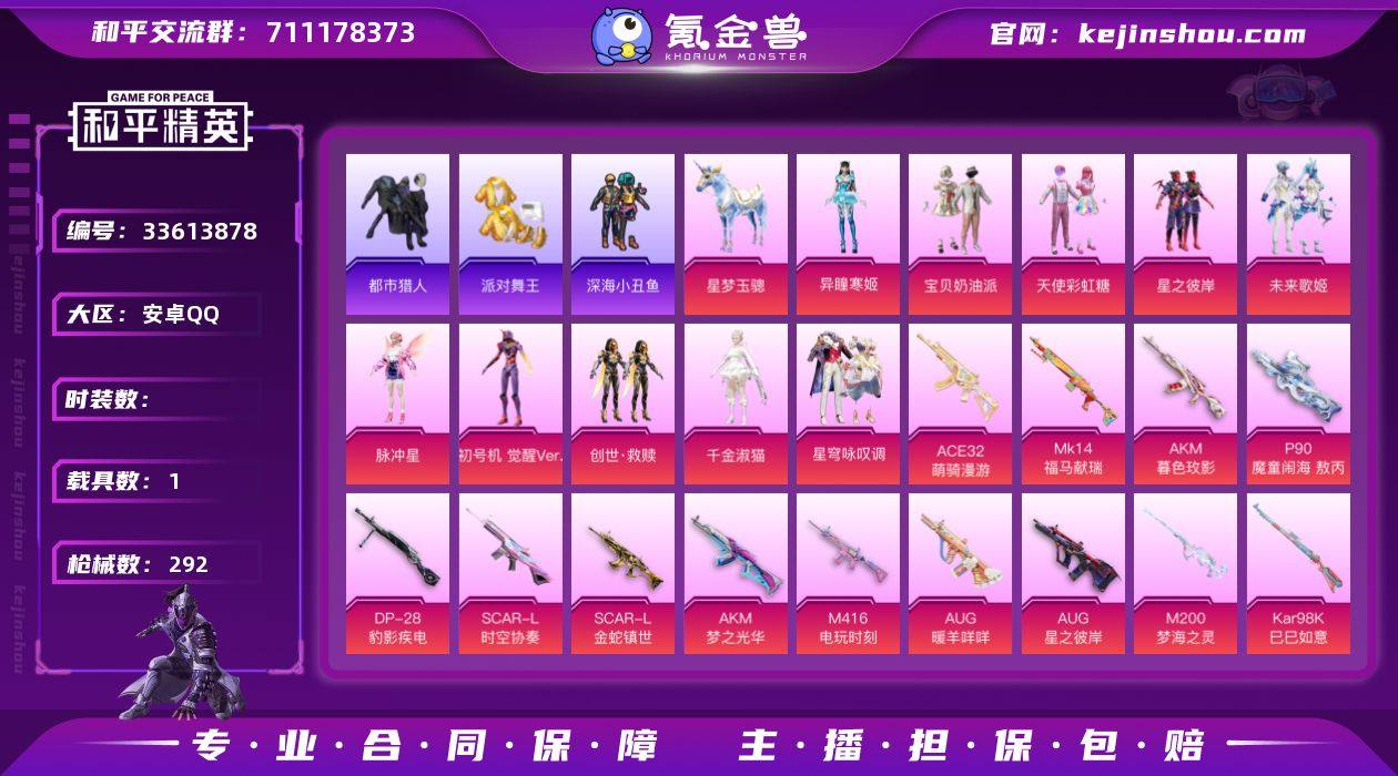 【1载具 18特效枪 14粉装 292枪皮 197套装】15印记 9.7万热力值,沙丘之主 敖丙。都市,金鞋,星梦玉骢,都市猎人,浪漫天命,狂沙舞者,派对舞王,暗影哥特,深海小丑鱼,宝贝奶油派,套装-天使彩虹糖,套装-梦幻火箭,套装-NV战队服,套装-星之彼岸,套装-未来歌姬,沙丘之主-图卡盟,套装-老实芭蕉,角色-脉冲星,角色-初号机 觉醒Ver.,角色-8号机,角色-Mark.06,套装-创世·救赎,角色-异瞳寒姬,角色-千金淑猫,套装-星穹咏叹调,魔童闹海-敖丙,人物-小舞·恋语,SCAR-L-时空协奏,SCAR-L-金蛇镇世,AKM-暮色玫影,AKM-梦之光华,M416-电玩时刻,AUG-暖羊咩咩,AUG-星之彼岸,ACE32-萌骑漫游,M200-梦海之灵,Kar98K-巳巳如意,Mk14-福马献瑞,UMP45-量子极限,UMP45-宇宙意志,AKS-74U-星穹咏叹调,P90-魔童闹海 敖丙,Vector-绯穹魔姬,DP-28-豹影疾电,DP-28-千金淑猫,编号:JJENS36