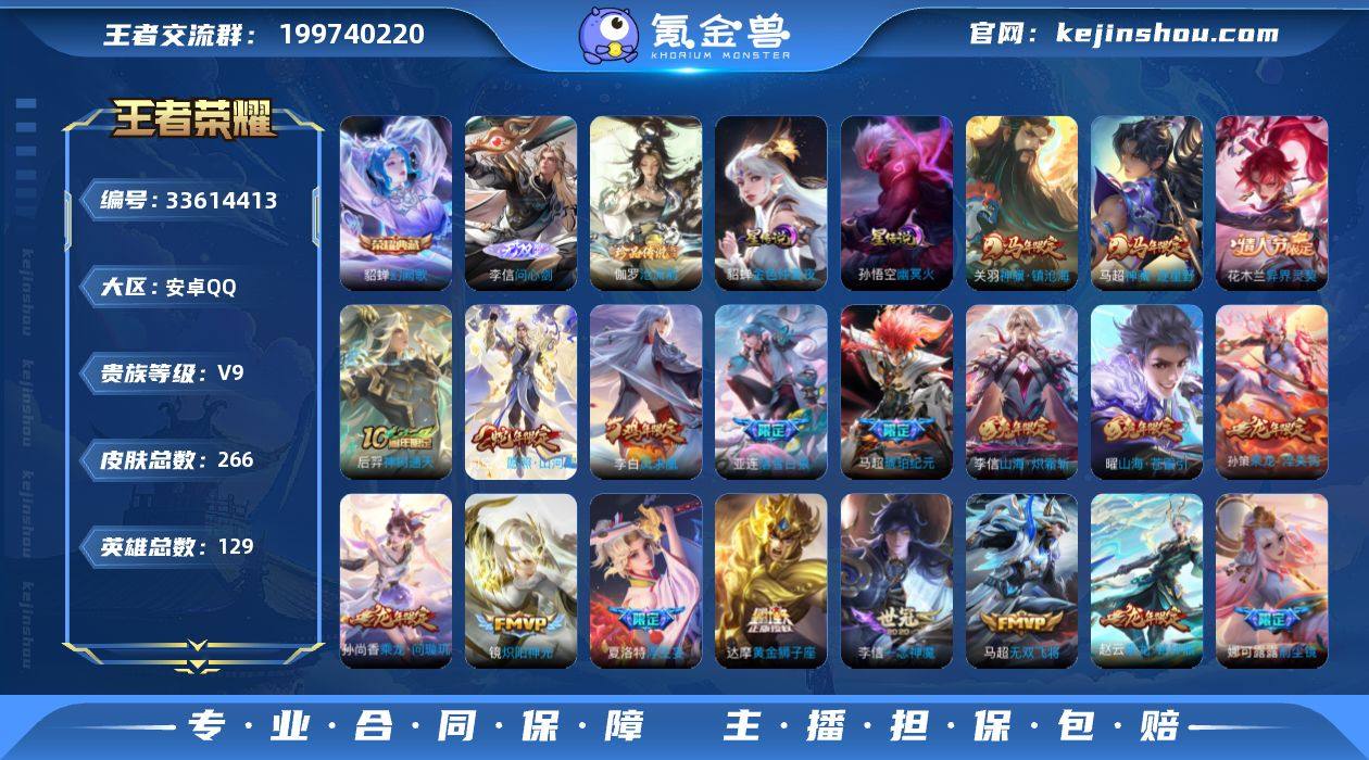 账号亮点:貂蝉幻阙歌 李信问心剑 伽罗沧流箭 关羽神骥镇沧海,马超神骥逐星野,花木兰异界灵契,后羿神树通天,司空震愿照山河定,云缨幻光神枪,海月金乌负日,亚连落雪白狼,吕布曦玄引,孙尚香乘龙问璇玑,孙策乘龙淬吴钩,赵云乘龙铭钟鼎,马超琥珀纪元,诸葛亮鹤羽星尊,夏洛特浮生妄,项羽无限倾心,孙悟空齐天大圣,小乔山海琳琅生,曜山海苍雷引,李信山海炽霜斩,百里守约碎云,橘右京枫霜尽,娜可露露前尘镜,孙尚香音你闪耀,马超无双飞将,赵云淬星耀世,镜炽阳神光,虞姬启明星使,曜云鹰飞将,李信一念神魔,貂蝉猫影幻舞,达摩黄金狮子座,花木兰冠军飞将,貂蝉仲夏夜之梦,李白凤求凰,孙悟空地狱火770-5 【英雄全皮】:娜可露露全皮,李信全皮,敖隐全皮,蒙恬全皮,夏洛特全皮,司空震全皮,空空儿全皮,影全皮,海诺全皮 【荣耀典藏】:貂蝉幻阙歌 【无双皮肤】:李信问心剑 【珍品传说】:伽罗沧流箭 【传说皮肤】:关羽神骥镇沧海,马超神骥逐星野,花木兰异界灵契,后羿神树通天,司空震愿照山河定,云缨幻光神枪,海月金乌负日,亚连落雪白狼,吕布曦玄引,孙尚香乘龙问璇玑,孙策乘龙淬吴钩,赵云乘龙铭钟鼎,马超琥珀纪元,诸葛亮鹤羽星尊,夏洛特...