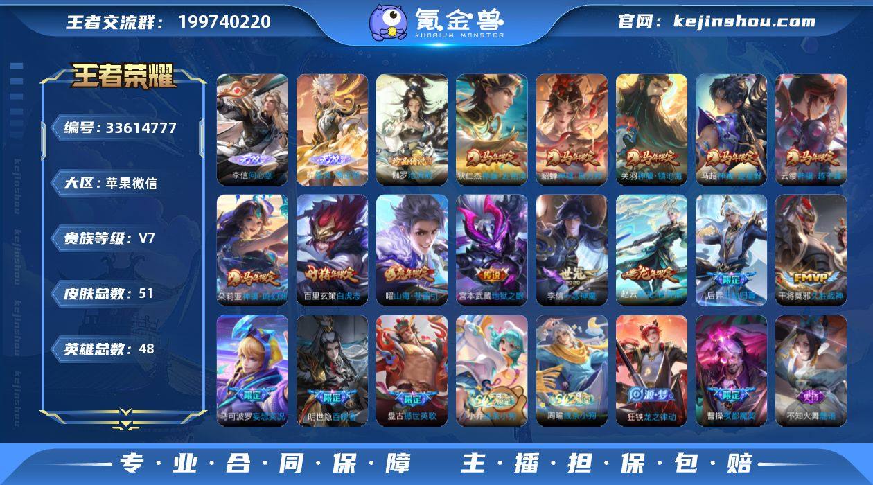 【精品小号·全套马年限定·问心剑+按键·器灵螭龙剑·沧流箭·千劫归真·乘龙铭钟鼎·马可波罗妄想实况·山海苍雷引·一念神魔·白虎志·可二次】YXw21801-苹果WX-47英雄-51皮肤-1王者印记-22铭文-贵族积分4w【贵族7】【2无双·1珍品·14传说·4按键·】【因赛季更新游戏段付以上号为准!】 【英雄全皮】:孙权全皮,敖隐全皮 【无双皮肤】:李信问心剑,曜器灵螭龙剑 【珍品传说】:伽罗沧流箭 【传说皮肤】:云缨神骥越千峰,关羽神骥镇沧海,朵莉亚神骥鸣幻洲,狄仁杰神骥赴朔漠,貂蝉神骥聚万邦,马超神骥逐星野,后羿千劫归真,赵云乘龙铭钟鼎,马可波罗妄想实况,曜山海苍雷引,李信一念神魔,干将莫邪久胜战神,百里玄策白虎志,宫本武藏地狱之眼 【限定皮肤】:狄仁杰阴阳师,赵云皇家上将,元歌无心,马可波罗妄想实况,狄仁杰魔术师,项羽海滩派对,百里玄策白虎志,曜山海苍雷引,赵云乘龙铭钟鼎,曹操夜都魔契 【年限皮肤】:百里玄策白虎志,曜山海苍雷引,赵云乘龙铭钟鼎 【战令限定】:周瑜线条小狗,小乔线条小狗 【史诗皮肤】:明世隐百晓客,盘古撼世英歌,周瑜线条小狗,小乔线条小狗,狂铁龙之律动,曹操夜都魔契,元歌无心,蒙犽龙鼓争鸣,不知火舞魅语,大乔猫狗日记,...