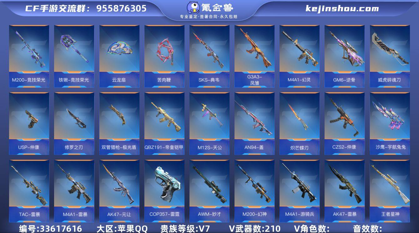 ✨t0新氪号!卡牌拆弹+无双帝皇侠手环+33王者武器 3王者雷套 新氪典韦(命中数字+按键)+凤雏+冰皮王者白虎+王者星神(星云枪线)冰皮王技+王翎(命中特效+数字+按键)王者新星+冰皮王者蔷薇+紫电王影+元让(音效卡+数字+按键)多三国武器+2COP+4屠龙+魅影钟小魁✨『210V-显血戒-VIP7-103级』 【王者武器】:/王者星神/王者白虎-冰霜奇迹/王者之技-冰霜奇迹/王者之翎/王者新星/QBZ03-王者蔷薇-冰霜奇迹/王者之影-紫电熔岩/王者之心/王者之尊/王者之誉/王者之蝶/M12S-雷霆王者/王者之霆/USP-雷暴王者-冰霜奇迹/王者之迹/王者之魂/雷暴王者雷套*3/ 【热门武器】:/SKS-典韦/G3A3-凤雏/AK47-元让/M4A1-游骑兵/AWM-妙才/GM6-逆骨/M200-幻神/M200-竞技荣光/AN94-盖/CZS2-仲康/M12S-天公/TAC-雷暴/AK47-雷暴/M4A1-雷暴/M4A1-幻灵/QBZ191-帝皇铠甲/ 【副武器】:/COP357-雷霆/COP357-冰川守护/USP-仲康/双持沙鹰-元让-过载/USP-神罚*4/沙鹰-宇航兔兔/双管猎枪-极光盾/ 【近战】:/啖睛矢-过载/铁锹-竞技荣光/威虎碎魂刀/苦肉鞭/炽芒蝶刃/修罗之刃/云龙扇/屠龙*4/ 【角色】:/魅影/钟小魁/ 【其他】:/拆弹动画-卡牌大师/帝皇侠手环+无双手环/1语音卡/2音效卡(元让)/命中特效(王翎)/...