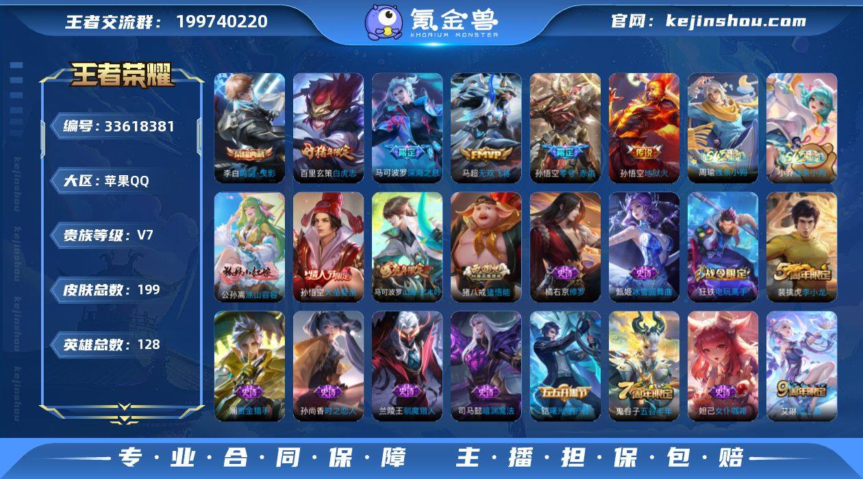 苹果Q-V7-永恒钻石IV段位-128英雄-199皮肤-1典藏皮肤-5传说-46史诗【荣耀典藏】:李白鸣剑曳影【传说皮肤】:马可波罗深海之息,马超无双飞将,孙悟空零号赤焰,百里玄策白虎志,孙悟空地狱火【限定皮肤】:白起狰,狄仁杰阴阳师,赵云皇家上将,赵云百木心枪,孙尚香蔷薇恋人,庄周高山流水,高渐离玩趣恶龙,钟无艳超时空战士,白起夜都怪侠,芈月重明,芈月幻夜卜梦,周瑜赤莲之焰,夏侯惇朔风刀,甄姬落雪兰心,曹操烛龙,典韦穷奇,马可波罗深海之息,马可波罗山海玄木吟,狄仁杰魔术师,狄仁杰万华元夜,达摩星际陆战队,达摩沙漠行僧,项羽海滩派对,老夫子醍醐杖,程咬金演武夺筹,王昭君午后时光,兰陵王驯魔猎人,兰陵王金庭之子,孙悟空大圣娶亲,孙悟空零号赤焰,牛魔御旌,李元芳云中旅人,钟馗驱傩正仪,雅典娜单词大作战,雅典娜黎明之约,太乙真人饕餮,鬼谷子原初探秘者,鬼谷子五谷丰年,黄忠火炮绅士,苏烈千军破阵,百里玄策白虎志,百里玄策原初追逐者,弈星混沌棋,梦奇顽趣,沈梦溪大漠名商,明世隐疑决卦,明世隐吟游魔法,裴擒虎李小龙,裴擒虎擒涛扼浪,狂铁御狮,狂铁电玩高手,米莱狄御霄,米莱狄胡桃异想国,云中君纤云弄巧,盾山御銮,猪八戒猪...