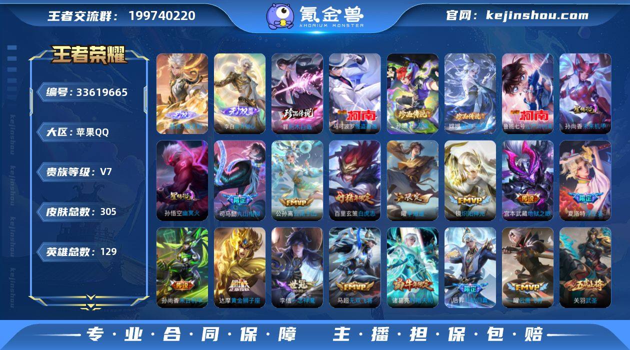 ·万战金标司空震·万战金标苍·准万战金标耀·金标橘右京·全套蛇年·器灵螭龙剑·碎月剑心·九霄神辉·千魇归渊·怪盗基德·江户川柯南·朽木白哉·器灵落星盏·孙策时之奇旅·绯月行·李逍遥·浮生妄·九山相柳·白虎志·武圣·挚爱之约·可二次】w25313-苹果Q-129英雄-305皮肤-17王者印记-300铭文-贵族积分10w【贵族7】【2典藏·2无双·5珍品·3星传说·36传说·1天幕·42按键】【因赛季更新游戏段付以上号为准!】 【英雄全皮】:孙权全皮,苍全皮,猪八戒全皮,夏洛特全皮,影全皮 【荣耀典藏】:花木兰九霄神辉,吕布千魇归渊 【无双皮肤】:曜器灵螭龙剑,李白碎月剑心 【珍品传说】:暃朽木白哉,嫦娥器灵落星盏,孙策时之奇旅,鲁班七号江户川柯南,马可波罗怪盗基德 【星元皮肤】:鲁班七号寅虎焰心,孙尚香未来机甲,孙悟空幽冥火 【天幕】:共赏芳华天幕 【传说皮肤】:马超神骥逐星野,后羿神树通天,司马懿九山相柳,公孙离云诺千山,后羿千劫归真,司空震愿照山河定,女娲愿照千秋盛,妲己愿照众生和,澜愿照九州拓,蔡文姬愿照福禄聚,虞姬愿照岁时盈,云缨幻光神枪,裴擒虎祥瑞亨通,嬴政玄雷天君,桑启鸣野蒿,诸葛亮鹤羽星尊,夏洛特浮生妄,不知火舞绯月行,马超无双飞将,孙策挚爱之...