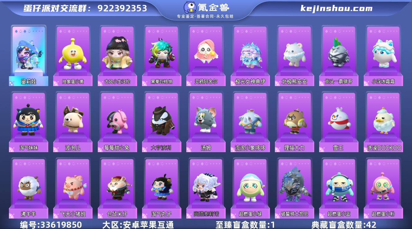 充值金额:910+ 亮点:1至臻 三套1元的装扮 42个典藏 稀缺资源:联动皮 账号来源:氪金兽