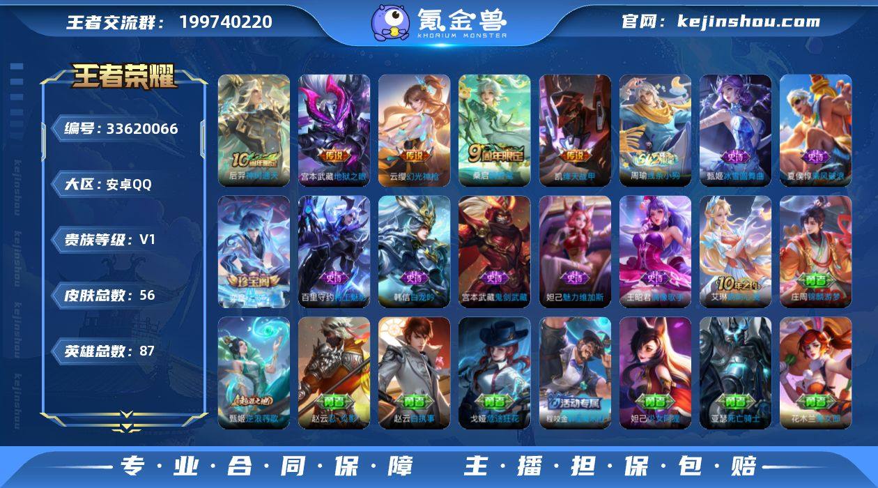 【5传说质量号可秒换绑】安卓QQ-87英雄-56皮肤【传说皮肤】神树通天 鸣野蒿 幻光神枪 地狱之眼 绛天战甲【史诗皮肤】万物之道 魅力维加斯 鬼剑武藏 白龙吟 偶像歌手 乘风破浪 冰雪圆舞曲 特工魅影【勇者皮肤】鹤鸣心笺 线条小狗 完美运算 剑破天穹 春野之旅 危途狂花 群星魔术团 锦麟游梦 逆浪荇歌 归虚梦演 未来纪元 万象初新 教廷特使 兔女郎 秘密基地 红桃皇后 死亡骑士 忍·炎影 白执事 归虚梦演 西部大镖客 玩偶对对碰 星际陆战队 少女阿狸 阴阳师 营地ID:1827140595