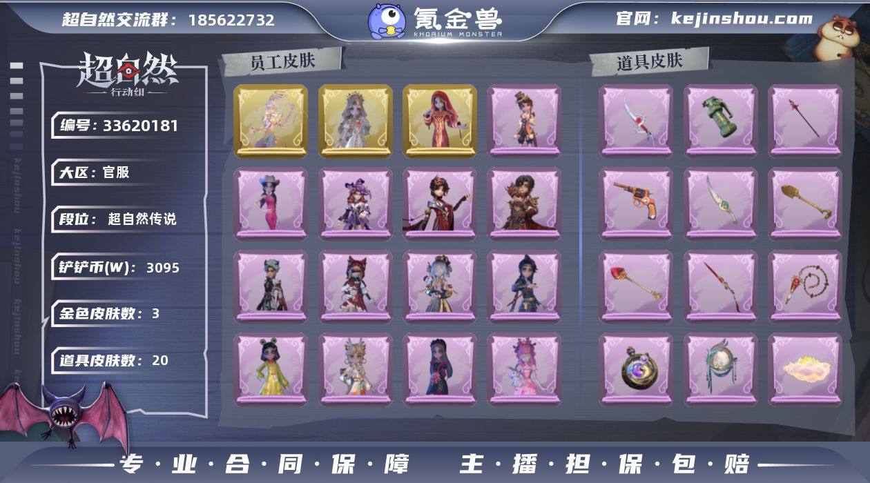 ZR967,金皮:3,紫皮:13,道具皮:20,外观:薇薇安-圣光之谕,逍遥-莲华渡,巫铃儿-镜花辞,阿念-庆宴绮愿,零-搬开山,莉莉-除妖小师妹,兰-千夜星谕,莉莉-情公主,莉莉-莓果陷阱,小黄-呱呱雨衣,阿念-灵昭鹿鸣,艾伦-黎明猎手,爱丽丝-丝缕哀歌,爱丽丝-耀眼的你,逍遥-绣春逍影,薇薇安-仙锋小姐,道具:额外的背包-飞花令,音响-鸣沙鼓,刺刀-铂刺与红萼,急救包-蔷薇物语,刺刀-碧络琅环,闪光弹-金戈玄铜,长鞭-缚誓之锁,传送按钮-昆仑镜,铲子-圣心之泪,铲子-龙鳞,专业手电-花束般的告白,喷气背包-乘风溯雪,长枪-罪棘,腰包-私藏的银河,传送按钮-逆时审判,腰包-宝剑八,桃木剑-凤鸣九天,腰包-月下莲台,专业手电-星寂,转轮手枪-新星时代,饰品:头饰-樱桃奶油布丁,头饰-炙热烧烤,头饰-卑微头套,头饰-精致露比头套,头饰-呆滞头套,头饰-惊魂南瓜头套,头饰-嘻嘻头套,头饰-滑稽头套,头饰-太空鲨头套,头饰-面具马头套,头饰-哈士奇头套,头饰-烈焰红唇头套,头饰-火爆了头套,头饰-烛光纪念,头饰-鱼头怪头套,头饰-萨卡班甲鱼头套,头饰-蒜了八,头饰-雪墩墩头套,头饰-大葱明头套,头饰-小财神豚豚头套,头饰-像素朋克墨镜,头饰-后室幸存者头套,挂饰-天使消失的年代,挂饰-钗头凤,挂饰-拂云仙,背饰-牛啤背包,背饰-白鼬...