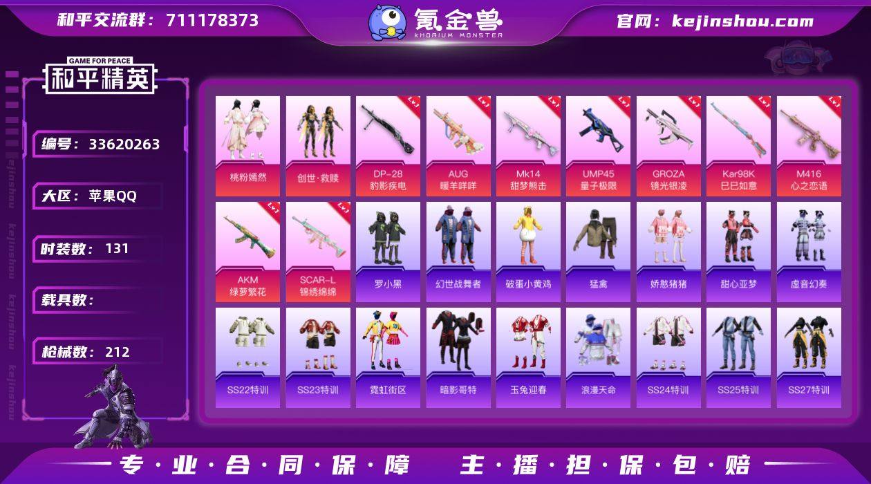 2粉装 11粉枪 1稀有装备 131套装 212枪皮 26热门 巡查衣 稀有紫装--巡查衣 金鼠迎春 幻羽潜行 精神漫游 疯狂小兔子 空投萌叽 智慧之神 炫蓝之夏 萌黄之夏 牛气满满 猛禽 耀粉歌者 飞行日记 柠萌假日 王牌教练 飞驰魅影 龟仙人 音速流光 果汁能量 涂山之恋 冷焰舞者 空岛之星 都市漫游者 惊鸿侠骨 萌趣咩咩 竞技名士 娇憨猪猪 锦衣飞扬 夏雨游龙 龙的传人 玉兔迎春 光之冒险 绯格组合 龙腾端午 街头潮人 绮丽涂鸦 特殊使命 旭日情侣 缤纷果语 格斗先锋 幻世战舞者 麻辣教官 幻影武者 雪山征服者 冰川特警 夏日音浪 热血青春 探宝勇士 酷潮明星 创世·救赎 桃粉嫣然 M416-心之恋语(7级) SCAR-L-黄金龙骨 S1897-炫彩节奏 Mini14-耀粉歌者 汤姆逊-炫彩节奏 S1897-飞驰魅影 DBS-焰鹰斗篷 DP-28-焰鹰斗篷 M416-红色方程式 汤姆逊-耀粉歌者 S12K-娇憨猪猪 S686-红色方程式 S12K-破晓战魂 AUG-耀粉歌者 S12K-玩趣呆呆 QBZ-飞驰魅影 AUG-甜蜜菠萝 DBS-甜心亚梦 野牛-乌木金纹 Mk47-炫光之旅 M249-糯团青竹 DP-28-甜心亚梦 AC-VAL-天降萌叽 AC-VAL-甜心亚梦 AC-VAL-乌木金纹 蜜獾-天降萌叽 MG3-惊鸿侠骨 DP-28-彩虹符号 蜜獾-娇憨猪猪 Kar98K-炫彩节奏 AKM-灼热熔岩 Kar98K-飞驰魅影 MG3...