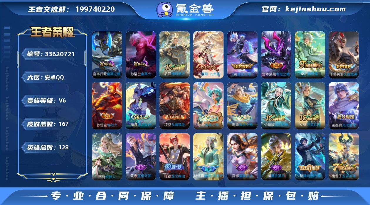 可换绑【多传说精品小号·澜蛇限·织梦人】幸运值241 7按键,2星传说,7王者印记,五级铭文78,无二次,安卓Q-V6-167皮肤-7传说-39史诗【英雄全皮】:空空儿全皮,影全皮【星元皮肤】:宫本武藏幽冥之眼,孙悟空幽冥火【传说皮肤】:后羿神树通天,澜愿照九州拓,桑启鸣野蒿,澜逐花归海,干将莫邪久胜战神,宫本武藏地狱之眼,孙悟空地狱火【限定皮肤】:狄仁杰阴阳师,赵云皇家上将,狄仁杰魔术师,狄仁杰万华元夜,达摩沙漠行僧,项羽海滩派对,程咬金演武夺筹,李元芳云中旅人,钟馗驱傩正仪,干将莫邪胡桃夹子,鬼谷子五谷丰年,百里玄策原初追逐者,沈梦溪大漠名商,桑启海盐诗旅,蒙犽百解令,鬼谷子天穹祈灯,沈梦溪龙舞盛年,刘备异域游侠【年限皮肤】:澜愿照九州拓【赛季限定】:狄仁杰万华元夜,程咬金演武夺筹,钟馗驱傩正仪,达摩沙漠行僧,沈梦溪大漠名商,李元芳云中旅人,桑启海盐诗旅,鬼谷子天穹祈灯,东皇太一噬灭天穹,太乙真人谧流熔炉,钟馗虚灵犬护,甄姬逆浪荇歌,亚瑟荣光之誓,百里玄策原初追逐者,项羽九幽镇关【战令限定】:孙悟空神迹守卫,孙膑茶境仙,马超访茗客,莱西奥光弋星穹,明世隐往忆晖光,周瑜线条小狗,小乔线条小狗【史诗皮肤】:海...