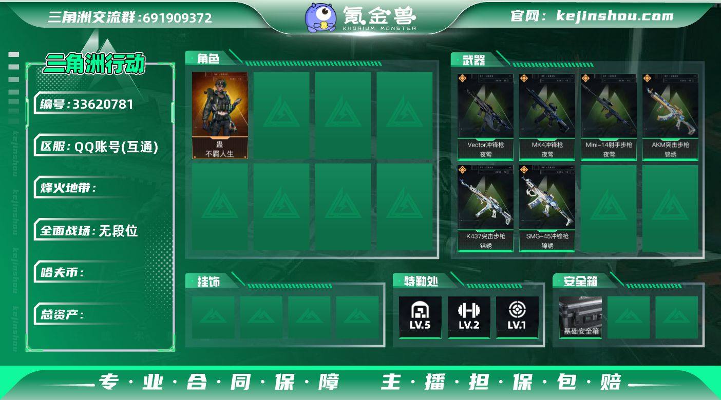【总资产45.38M 哈弗币2861万 干员外观1个 烽火25级 黄金】有6套 仓库45M 现金2800万 蛊-不羁人生 AKM突击步枪-锦绣,K437突击步枪-锦绣,Vector冲锋枪-夜莺,SMG-45冲锋枪-锦绣,MK4冲锋枪-夜莺,Mini-14射手步枪-夜莺 游挂凌工作白 df17-01,编号:WPGEG31
