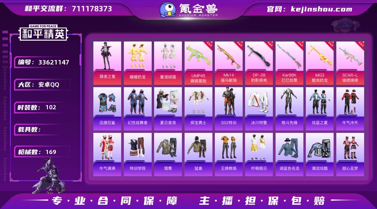 【连体王者3粉装6特效枪带王者132皮2传说 可秒换绑不用等】 安卓Q区-44788热力值-102套装-169枪皮 【3粉装】 暖暖奶龙 罪夜之冕 蜜语绒猫【6特效枪】 SCAR-L-锦绣绵绵(5级) MG3-酷泡奶龙(7级) Mk14-福马献瑞(5级) UMP45-萌骑冒险(2级) Kar98K-巳巳如意(5级) DP-28-豹影疾电(5级)【30热门】 M416-蓝色火焰 GROZA-异彩先驱 QBZ-银碳小老虎 长空猛禽 异彩先驱 虚音幻奏 甜心亚梦 牛气冲天 霓虹极客 蜜语绒猫 迅捷狂鲨 白色伏地魔 SS27特训 SS26特训 SS25特训 SS24特训 SS23特训 SS22特训 AKM-缤纷海域 SCAR-L-玉兔迎春 GROZA-田园牧歌 M762-天降萌叽 Mk47-乌木金纹 UZI-娇憨猪猪 UMP45-蓝色火焰 MG3-幻世战舞者 AKM-霓虹街区 M416-紫翼圣骑【1飞行器】 庄周梦蝶飞行器 营地ID:963204700