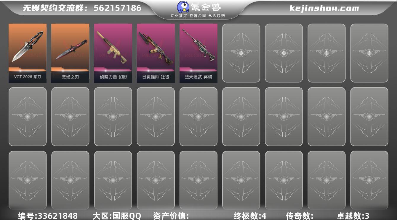【qyz9985】玩够可回血vct篆刀悲悯之刃黑波之刃狮子狂徒侦察幻影天界冥驹 qyz9985 【近战武器】:近战武器-蒙太奇 战斧,近战武器-VCT 2026 篆刀,近战武器-无畏契约季前邀请赛 悲悯之刃,近战武器-黑波之刃 【狂徒】:狂徒-日冕雄师 【幻影】:幻影-侦察力量,幻影-蒙太奇 【冥驹】:冥驹-堕天遗武 【战神】:战神-蒙太奇 【骇灵】:骇灵-蒙太奇 【狂怒】:狂怒-蒙太奇 【卡面】:热舞环节 卡面,无畏契约GO!第一卷:芮娜 卡面,无畏契约GO!第一卷:零 卡面,代号红色 卡面,新兵报到 卡面,V契约 卡面,无畏契约 卡面 【喷漆】:买装还是存钱 喷漆,无畏契约GO!第一卷:贤者 喷漆,胜利属于无畏契约 喷漆,GLHF 喷漆,无畏契约 喷漆 【挂饰】:瞬云履 挂饰,天外飞客 挂饰,无畏契约 纪念币 挂饰
